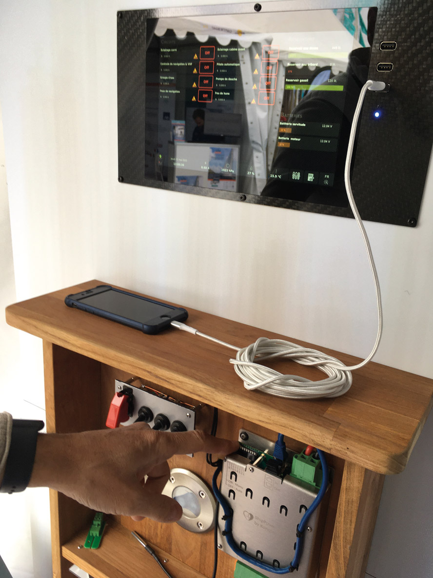 Grâce à ses capteurs, ce petit boîtier ShipHeart développé par Koriolan permet de connaître la consommation de tous les appareils à bord, et de pouvoir les commander pour maîtriser son parc énergétique.