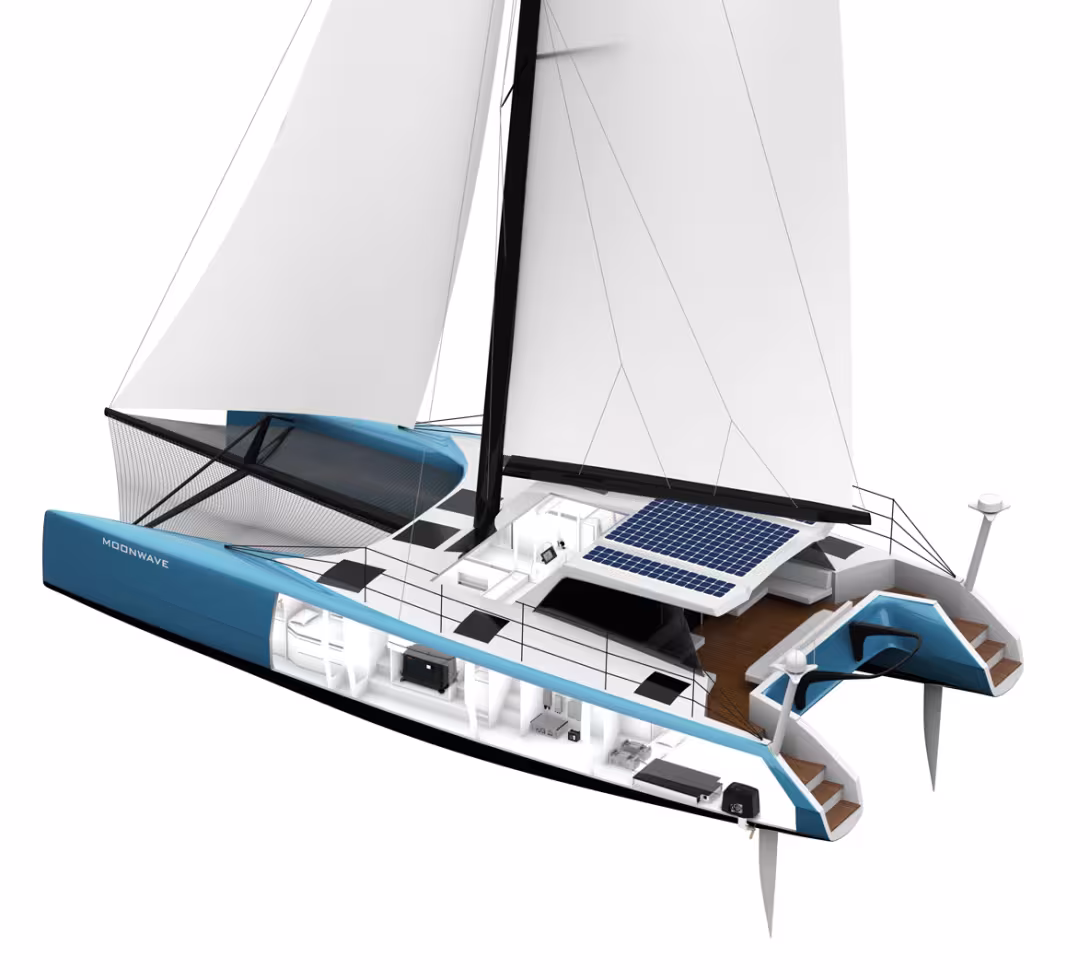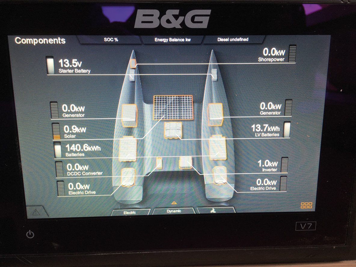 C’est un fait : les 10 000 heures de fonctionnement d’un moteur diesel (théoriquement le double pour un catamaran) sont les principales sources de pollution du cycle de vie d’un multicoque. Passer du thermique à l’électrique est donc l’action la plus vertueuse et efficace pour cocher la case green.