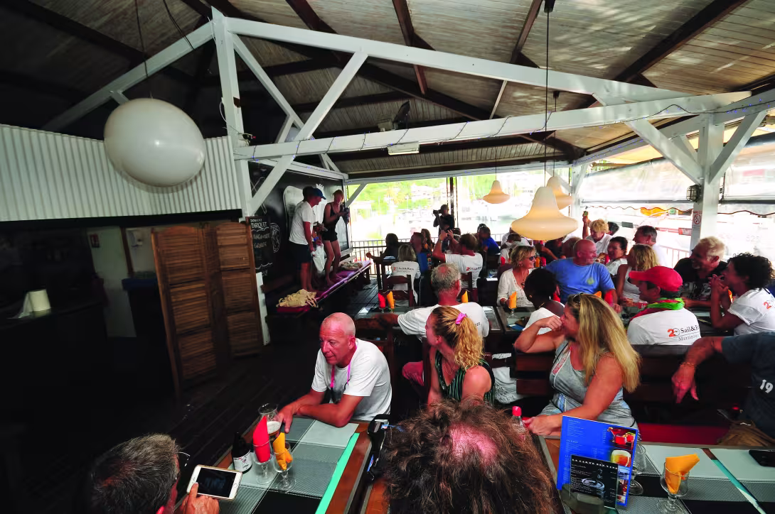 Réunir neuf TS sur une flotte de trentre-trois pour ce premier rassemblement de propriétaires en Martinique, c’était un sacré petit challenge que l'équipe de Lorient a tenu à relever pour sa deuxième année aux commandes. Le résultat ? Assurément un vrai succès de convivialité, mais également une mémorable rencontre de marins sur l'eau. Déjà parce que l’alizé était bien au rendez-vous. Entre le Marin, Sainte-Anne, les anses d'Arlet, la baie de Fort-de-France et les passages à raser l’emblématique du rocher du Diamant, les parcours préparés par Fred Blandin et Régis Guillemot ont constitué une piste d'essai rapide grandeur nature pour nos bolides. Sur les petits parcours, le différentiel entre les TS5 et les 42 est resté étonnamment modeste tant la virtuosité de ces catas de 12,98 m semble en mesure de rivaliser avec leur grands frères. Lors des manches plus ouvertes et dans des conditions de vent musclées (25 à 38 nœuds), la foulée des TS5 sous grand-voile à un ris et gennaker s'est avérée irrésistible. Jamais moins de 15 nœuds au GPS, souvent entre 17 et 21 avec des pointes au-delà de 24 : les TS5 ont fait parler la poudre ! Le 52 Baie du monde 2 n'était cependant jamais très loin. A bord de notre TS5 Addictive Sailing mis à l'eau en novembre et transaté en décembre, nous disposions d'une belle version (cloisons et planchers carbone) et, malgré un léger embonpoint consécutif à sa vocation charter (paddles, gros dessalinisateur, équipement confort) et un avitaillement de sybarites, nous pouvions parfois faire jeu égal avec le ténor incontesté de la flotte Halucine. Ce TS5, parfaitement optimisé pour la performance, déjà vainqueur dans sa classe du Trophée des Multicoques 2019, était mené à la cravache par les cousins Guillemot et leur équipage. L'homogénéité technique de la flotte, dans ces conditions musclées, a favorisé des régates au contact au profit des cavaliers seuls. Et la motivation générale, dans un alizé tonique et généreux en rafales, a permis de démontrer tout à la fois la maîtrise des skippers et la tolérance des machines poussées parfois à la limite. Par 25 à 30 nœuds, tous les catamarans étaient sous grand-voile haute. Lors de la dernière manche (anse d'Arlet-Marin par l'intérieur du Rocher du Diamant), cet enthousiasme a su créer une véritable ambiance de régate au couteau avec quelques figures de style impressionnantes. La connaissance du site et la virtuosité de l'équipage du très radical Halucine lui ont permis de conserver sa position de leader. L'arrivée au large de Sainte-Anne, GPS bloqué à 20 nœuds et gerbes d'embruns dignes d’une soirée mousse, a été particulièrement spectaculaire. A terre, au Marin et aux anses d’Arlet, les (vraies) soirées musicales et animées resteront pour moi mémorables à tous points de vue – quelle est belle, la plaisance en multicoque !