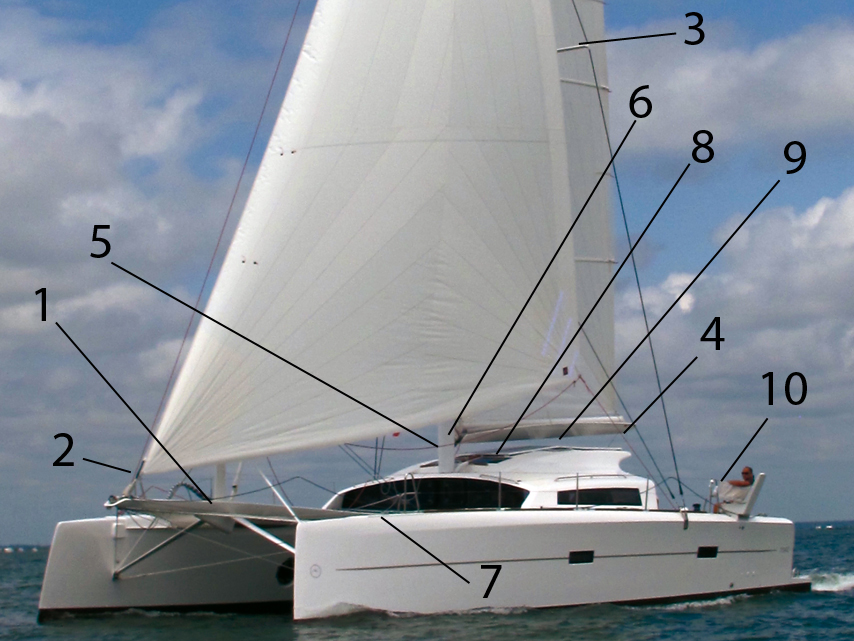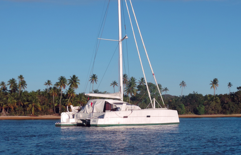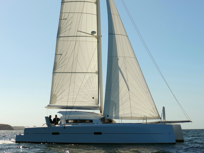Ce catamaran rapide, présenté au Salon du Multicoque de La Grande Motte en 2016, a été choisi pour le grand voyage en couple (dont une personne à mobilité réduite) ; nous, nous l’avons choisi comme démonstrateur de nouvelles solutions particulièrement adaptées aux multicoques. Dans la collection du propriétaire, il succède à un Corneel 26’, un Louisiane, un Outremer 40-43’ (puis son évolution dotée d’un mât carbone rotatif, d’une croix carbone et d’un seul puits de dérive !). L’expérience du chef de projet est donc significative, et ses contraintes biomécaniques l’ont conduit à une réflexion radicale au sujet de la maîtrise d’un multicoque pour obtenir un catamaran rapide, élégant et facile à utiliser. Pour cela, il a fait appel à un chantier capable de l’accompagner dans les modifications assez profondes du modèle de base (Marsaudon Composites) et à un duo de techniciens extrêmement créatif : Thierry Petitjean pour la partie gréement/composites et Maxence Valdelièvre de Tenderlift pour la partie hydraulique et la gestion électromécanique. Les solutions mises en œuvre sont ici décrites à titre d’exemple et transposables sur de nombreuses unités où la force physique de l’équipage est confrontée à la puissance du bateau ; ce qui est le cas de nombreux multicoques de croisière.