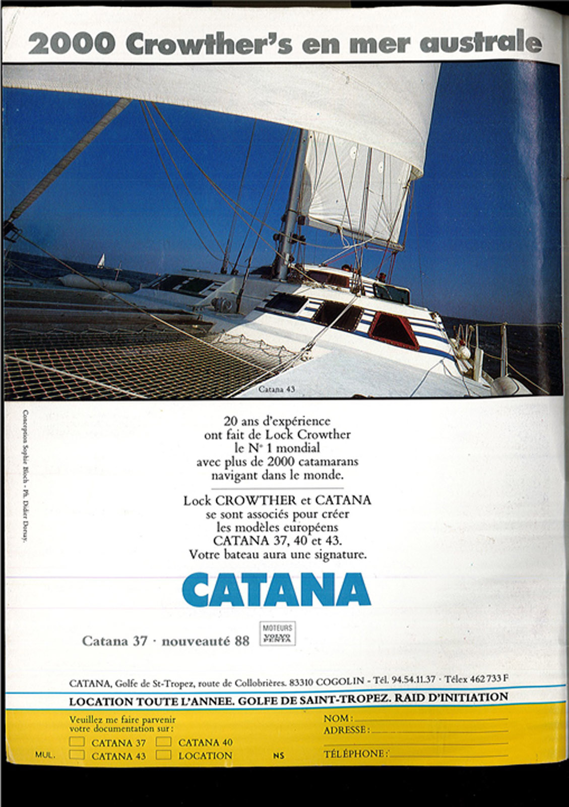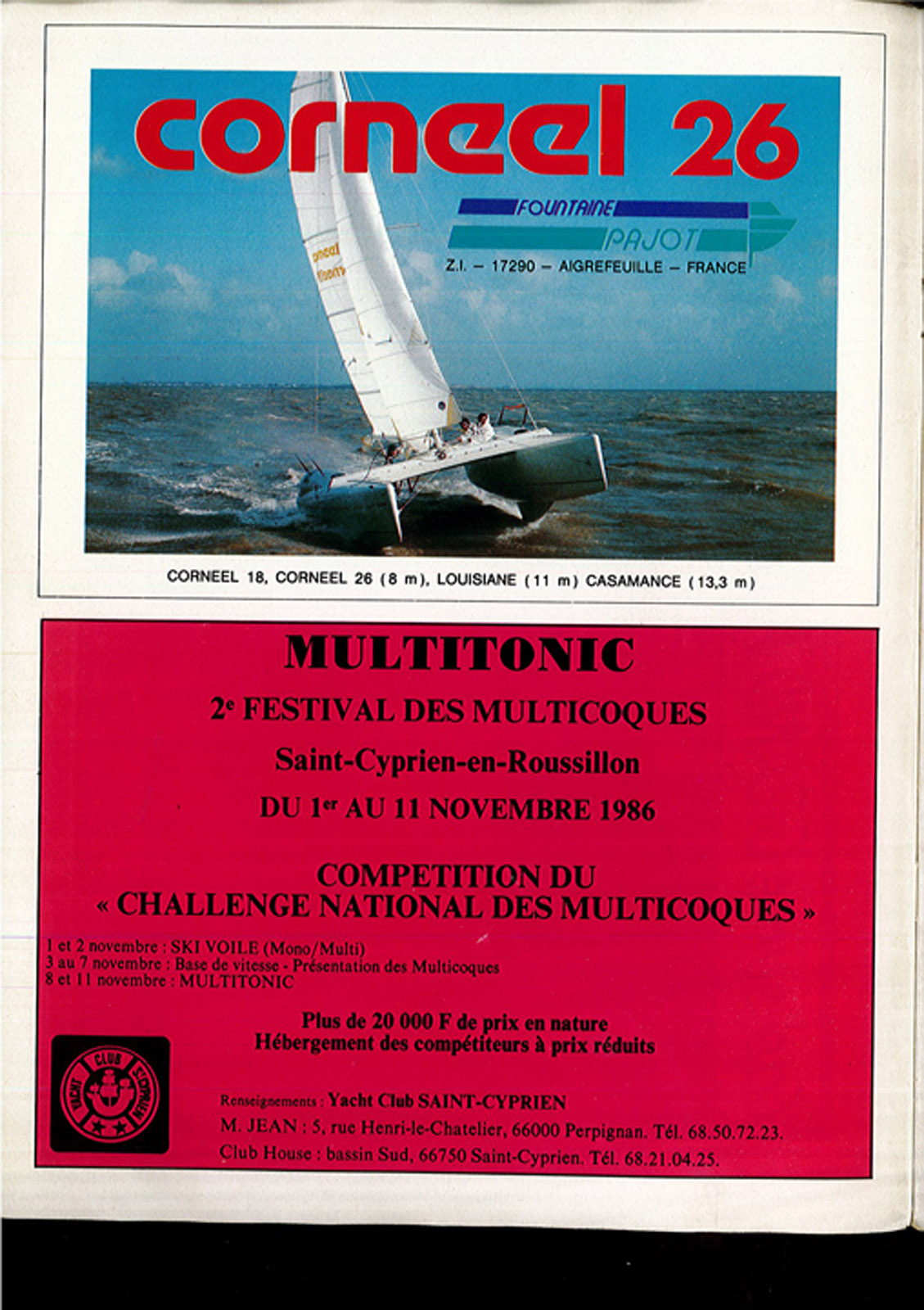![]() Première publicité de Fountaine Pajot – MM006, 1986. |