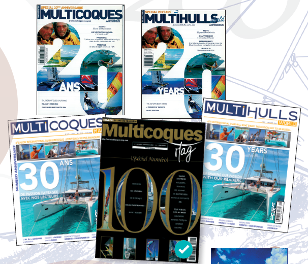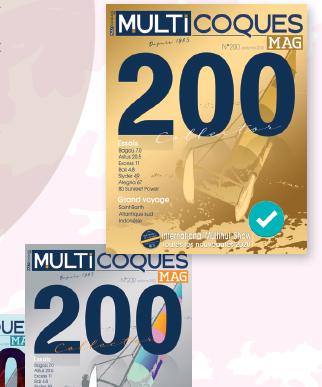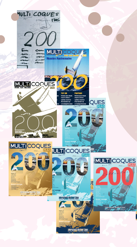 Nous ne sommes pas vraiment partis de zéro, puisque Multicoques Mag avait déjà mis en avant sur sa couverture ses 20 ans, ses 30 ans, et surtout son no 100. Lequel a d’ailleurs été réservé à l’édition française : Multihulls World 71 a donc eu droit à une couverture « classique ». Notre premier choix a été de décliner ce no 200 aux deux magazines. Ensuite, nous avons opté pour une formule générale relativement proche de celle du no 100.