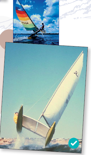 Difficile, pour un numéro aussi symbolique, de dédier à un multicoque habitable moderne – et donc à un constructeur – notre couverture. Dès lors, deux possibilités : multiplier les images et donc les modèles, les ambiances, ou s’atteler à un travail de conception graphique. Nous sommes partis sur cette seconde option, tout en évitant les facilités communes à cet exercice – bougies, patchwork d’anciennes couvertures, etc. Mon inspiration de départ, c’est cette pub pour Hobie Cat avec le 18 qui saute une vague – visionnez la fameuse vidéo. Le Hobie, c’est un peu par là qu’on a tous commencé – l’Opti puis le Hobie ! Sollicité, le constructeur nous a proposé quelques images de sa photothèque ; on est restés à celles de l’époque. Ma favorite : celle du Hobie 14 vu de face.