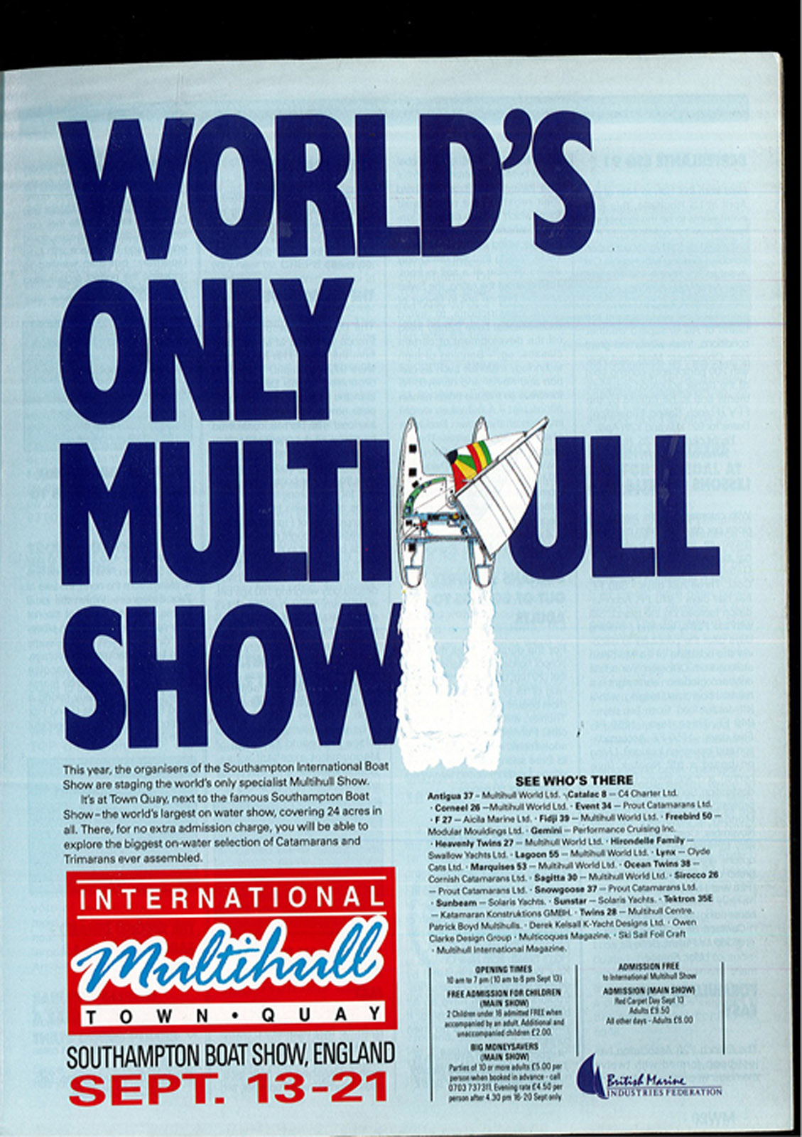 ![]() Le premier salon des multicoques ? MM007,– 1991. |