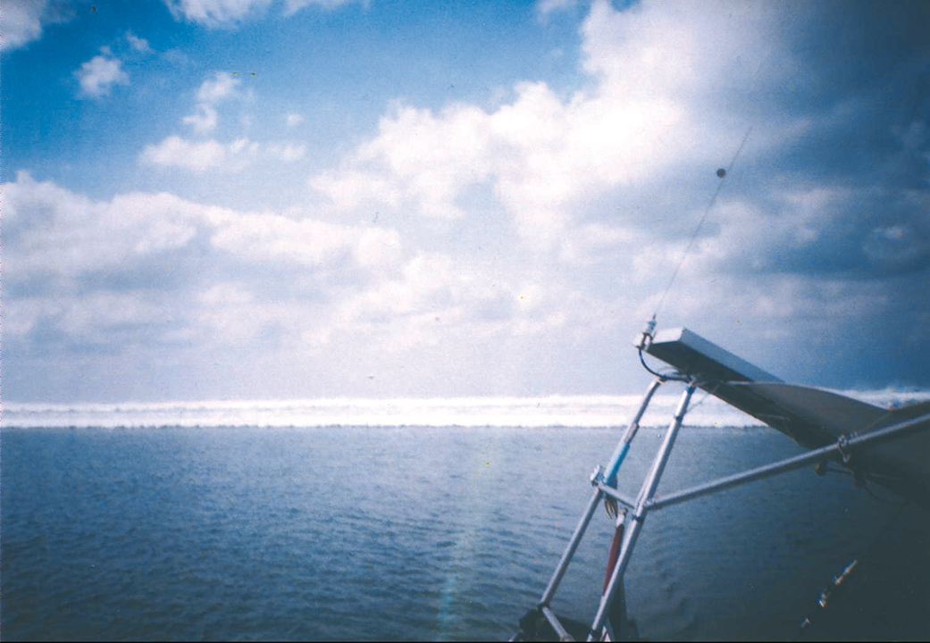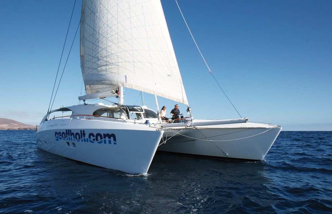 Nous avons quitté les îles Canaries un 10 décembre : Geoff, tétraplégique, son auxiliaire de vie et un caméraman pour réaliser un film sur l'aventure. La durée estimée de la traversée était de 17 jours, et nous imaginions que nous serions accompagnés par des alizés soutenus et réguliers sur notre beau catamaran de 18 mètres, mais, en réalité, le vent nous soufflait dans le nez, les moteurs étaient encrassés par du carburant de mauvaise qualité, notre anémomètre ne fonctionnait pas, et il nous a fallu un mois, passant Noël et le Jour de l’An en mer…