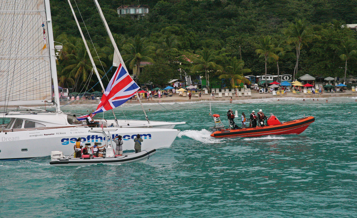 Finalement, après les inévitables changements de cap, les retards, le manque global de vent et un mois de dur labeur, nous avons atteint Cane Garden Bay à Tortola. Ce moment appartenait à Geoff. Il a été submergé par l’adrénaline, l’émotion, le soulagement, et la joie de revoir sa famille. Les bateaux faisaient hurler leur sirène et la foule acclamait Geoff tandis qu’il faisait des cercles juste devant la plage, le lieu le plus marquant de son existence.