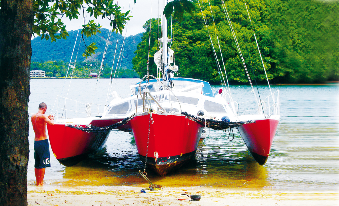 Mais alors, quel bateau ? A l’origine du projet, nous rêvions d’un monocoque de 50 pieds, au cul large, aux cabines nombreuses, à la ligne élégante. Mais voilà, durant notre demi-tour du monde, nous les avions croisés, ces chanceux propriétaires de multicoque, que ce soit sur leur bateau de série caravane familiale, un plan Lerouge en carbone bouffeur de milles, ou un Warham bricolé aux poutres de bambou. Et malgré leurs différences, une certitude, celle de ne plus jamais naviguer en monocoque. Car tous nous le disaient, essayer le cata, c’est l’adopter.