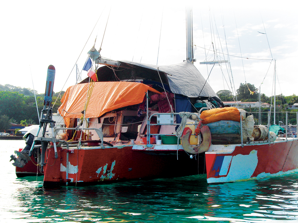 Ce bateau, on nous l’a donné, donc on ne peut pas non plus s’attendre à ce qu’il soit en super bon état. C’était la veille de Noël, en Polynésie. Un ami, à qui on disait qu’on allait sans doute acheter un bateau au Costa Rica, pour vraiment pas cher, car on ne pouvait pas se payer plus…, est revenu une heure plus tard en me tapotant sur l’épaule : "Hé ! tu veux pas plutôt qu’on te donne un bateau à Fidji ?"