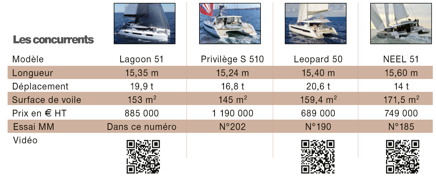 Le coeur des gammes de catamarans de croisière, calé ces dernières années à 45 pieds, tend à mordre quelques pieds supplémentaires... Le créneau des 50 pieds gérables sans équipage est devenu âprement disputé, comme en témoigne le lancement quasi concomitant de l’Aura 51 et du Lagoon 51. Nous avons pu découvrir le premier à La Rochelle.