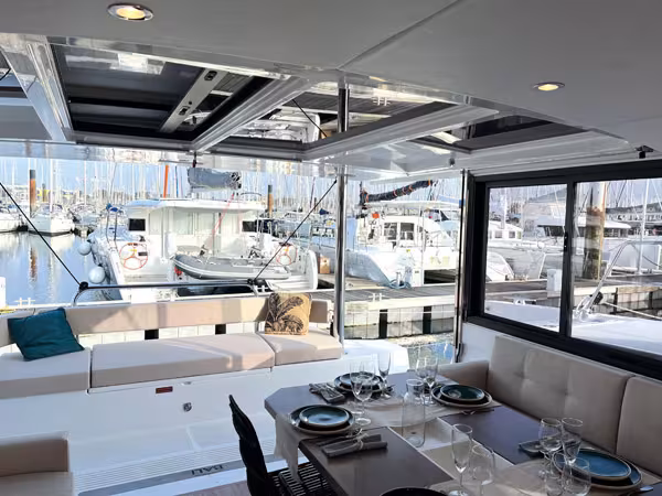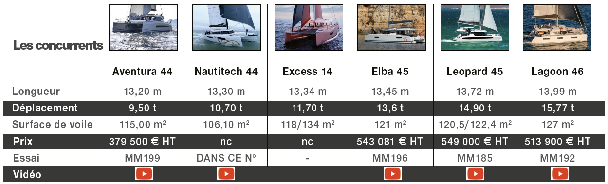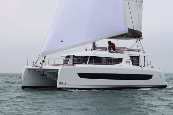 Ce nouveau 4.4 remplace un peu le Bali 4.3, et surtout le 4.5, premier modèle de la gamme Bali. A bord de ce catamaran, plus que jamais dédié au confort et aux vacances en famille, tous les attributs de l’ADN Bali sont bien au rendez-vous – porte basculante, baies latérales ouvrantes, pontage en dur, grande capacité froid. En prime, la taille de ce modèle, plus proche finalement du 4.6 que du 4.4, autorise la porte avant, le flybridge aménagé et la plate-forme arrière.