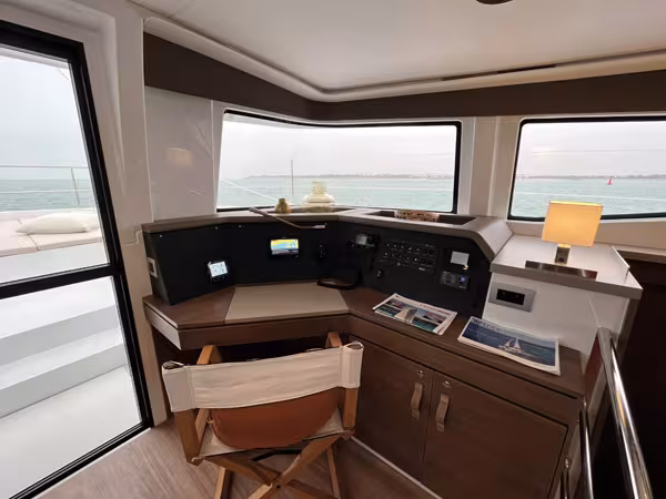 Le flybridge rassemble le poste de barre/ manoeuvres et une vaste zone dédiée au farniente.