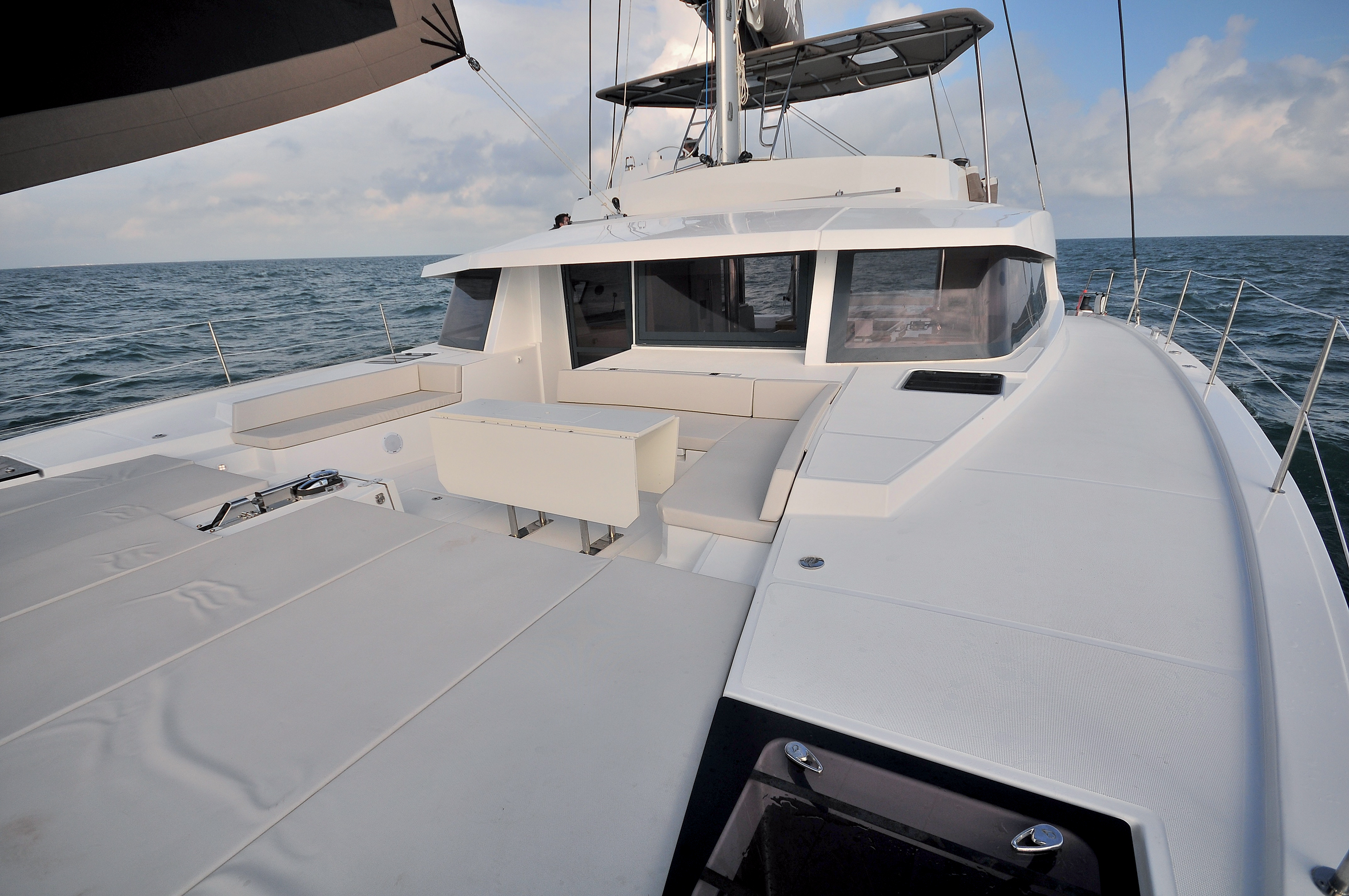 10 : L’architecture et le procédé de construction mixte permettent de bonnes performances à la voile pour un catamaran de croisière de ce volume.