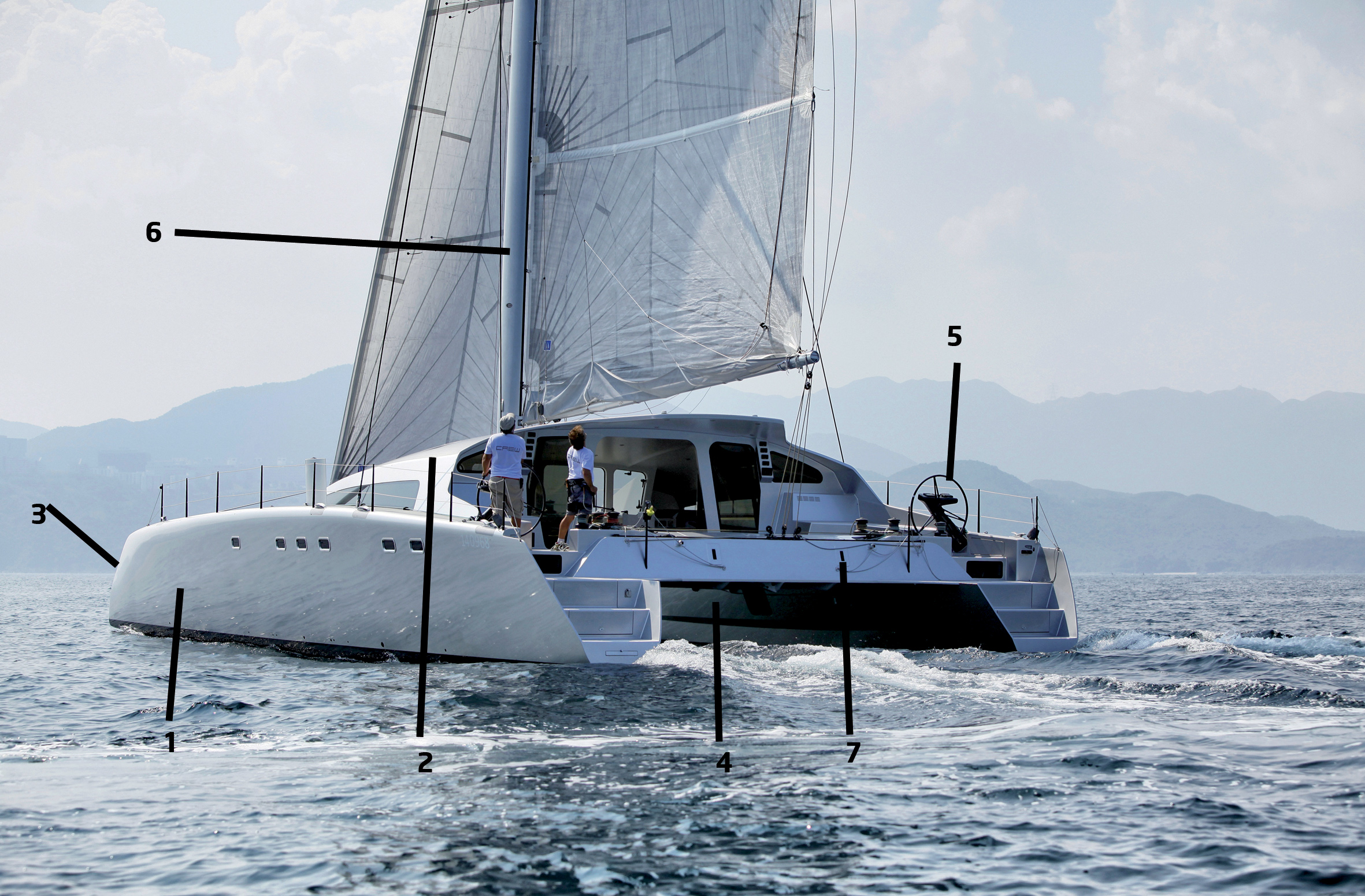 Depuis quelques années, on assiste à l’émergence de multicoques voulant jouer les "GT" de la mer. Des engins capables de voguer en permanence à un minimum de 10 nœuds, de tenir des moyennes à près de 20 avec des pointes à 30, mais sans pour autant renoncer au confort feutré que l’on retrouve habituellement sur un yacht. A la rédaction, nous les avons baptisés les "Sportyachts". On parle ici des Gunboat, Tag et autres HH, pour lesquels aucun superlatif n’est assez fort. Notre Bañuls 60 a été imaginé et conçu par Raphael Blot dans cet esprit avec comme objectif ambitieux d'atteindre l’excellence sur l’eau, avec élégance, vitesse et facilité de navigation. Il a fait appel à Renaud Bañuls pour la conception et à Mc Conaghy pour la construction. L’amalgame d’un architecte ayant participé au succès de BMW Oracle à la Coupe de l’America et d’un chantier ayant produit les plus beaux et sophistiqués racers du monde tel Wild Oats ne peut faire qu’une bonne prise pour peu que le dosage des ingrédients soit ingénieusement distillé. Avec Thomas Coville comme conseiller technique, le trio établit un cahier des charges autour d’un design épuré, d’une finition minimaliste mais luxueuse, de solutions techniques inédites mais simples, et d’une construction à la pointe de l’ergonomie issue de la course en solitaire. Calculant en permanence et pour chaque détail les compromis pour donner à cet éventail un équilibre très abouti sans pour autant générer une usine à gaz ni même faire exploser le budget !