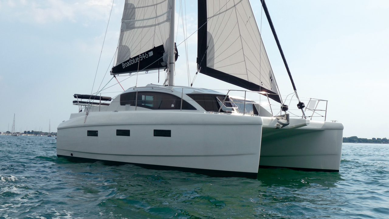 Il fut un temps où les Anglais étaient à la pointe de la production des catamarans de croisière, mais, quelques décennies plus tard, cet âge d'or semble bien loin, les leaders du marché sont désormais français, sud-africains, australiens, ou d’autres nationalités. Aussi, à l’arrivée d’un nouveau catamaran anglais, notre curiosité s'éveille.La tendance actuelle sur les catamarans de croisière,c'est toujours plus : de nombreux chantiers démarrent leur gamme à 45 pieds. Un grand bateau, c’est bien, mais ça coûte cher à l’achat, ça coûte cher en place de port, ça coûte cher à entretenir, et c'est donc inabordable pour la majorité des plaisanciers. Or nous avons affaire ici à un "petit" bateau ; pourtant, la communication annonce deux grandes cabines doubles, deux couchettes simples, des salles de bains confortables, une grande cuisine, une belle table à manger et une grande table à cartes dans le carré, un grand cockpit, etc. Vraiment? Sur un 33 pieds ? Et l’ensemble pour 139 500 £ ? Certains raccourcis ont dû être pris, il a fallu trouver des compromis? Mais va-t-il naviguer ? Pour en avoir le cœur net, nous avons envoyé Graham au Royaume-Uni pour voir de quoi il retourne vraiment avec ce nouveau Broadblue 346.