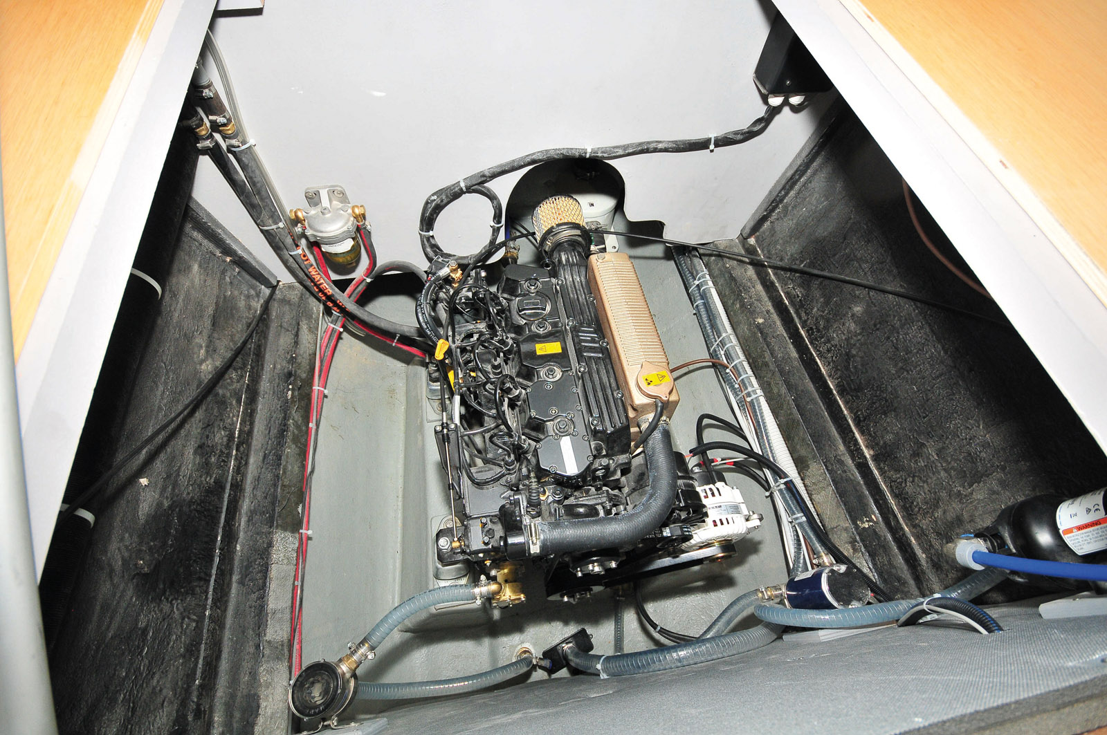 Les installations techniques sont soignées. Le constructeur a opté pour des moteurs Lombardini de 35 CV avec arbre d’hélice en option.