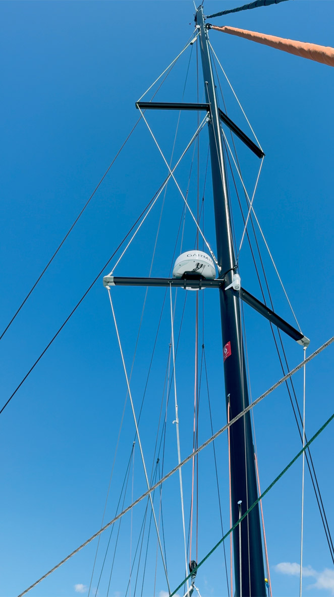 « Le meilleur profil pour ce projet était celui de VMG, avec un mât positionné en avant du rouf, très avancé par rapport aux tendances actuelles. Ce choix répond à deux objectifs : simplifier la fabrication pour répondre aux cadences de production du chantier, et agrandir les volumes intérieurs du carré et du cockpit. »