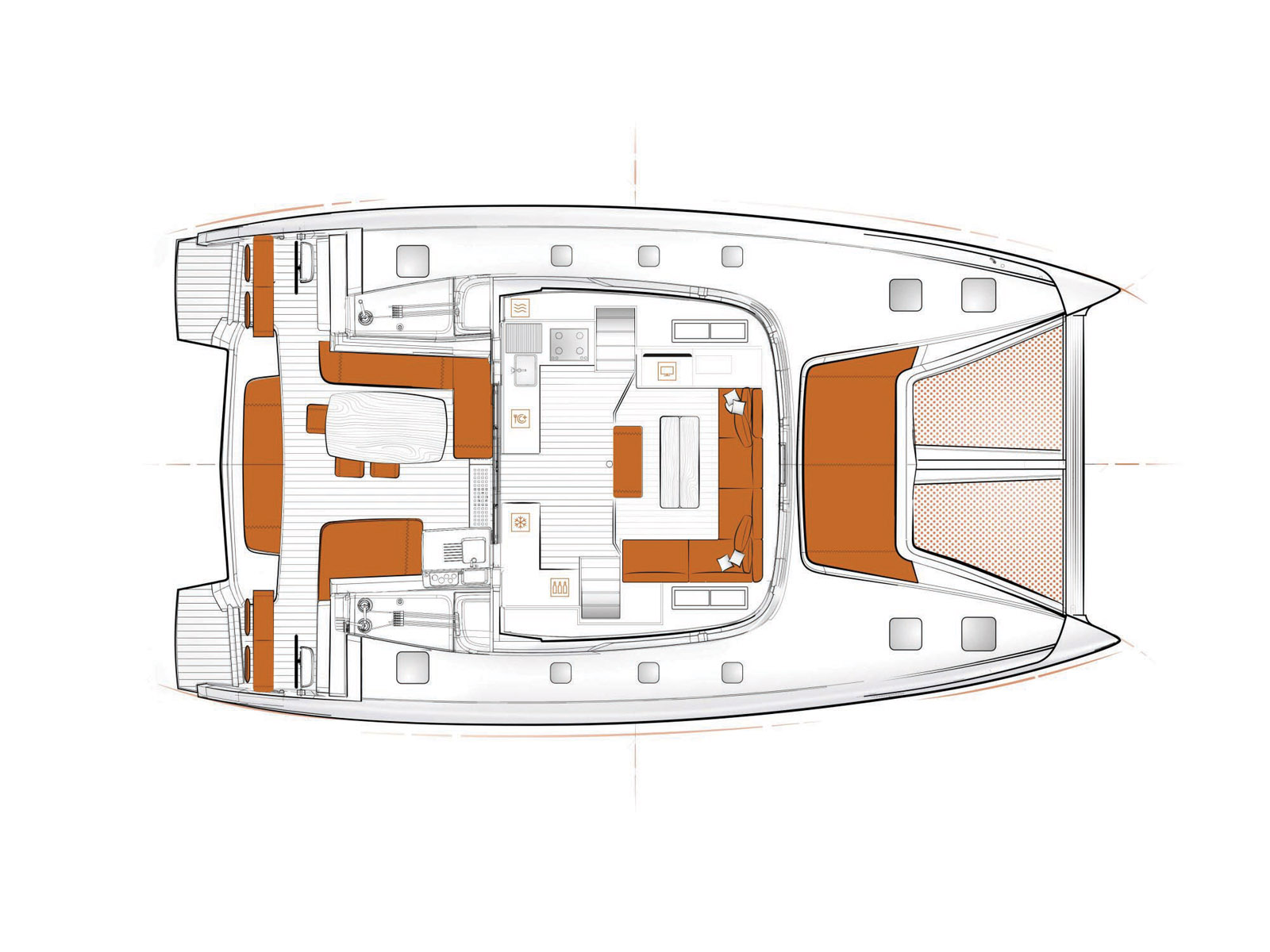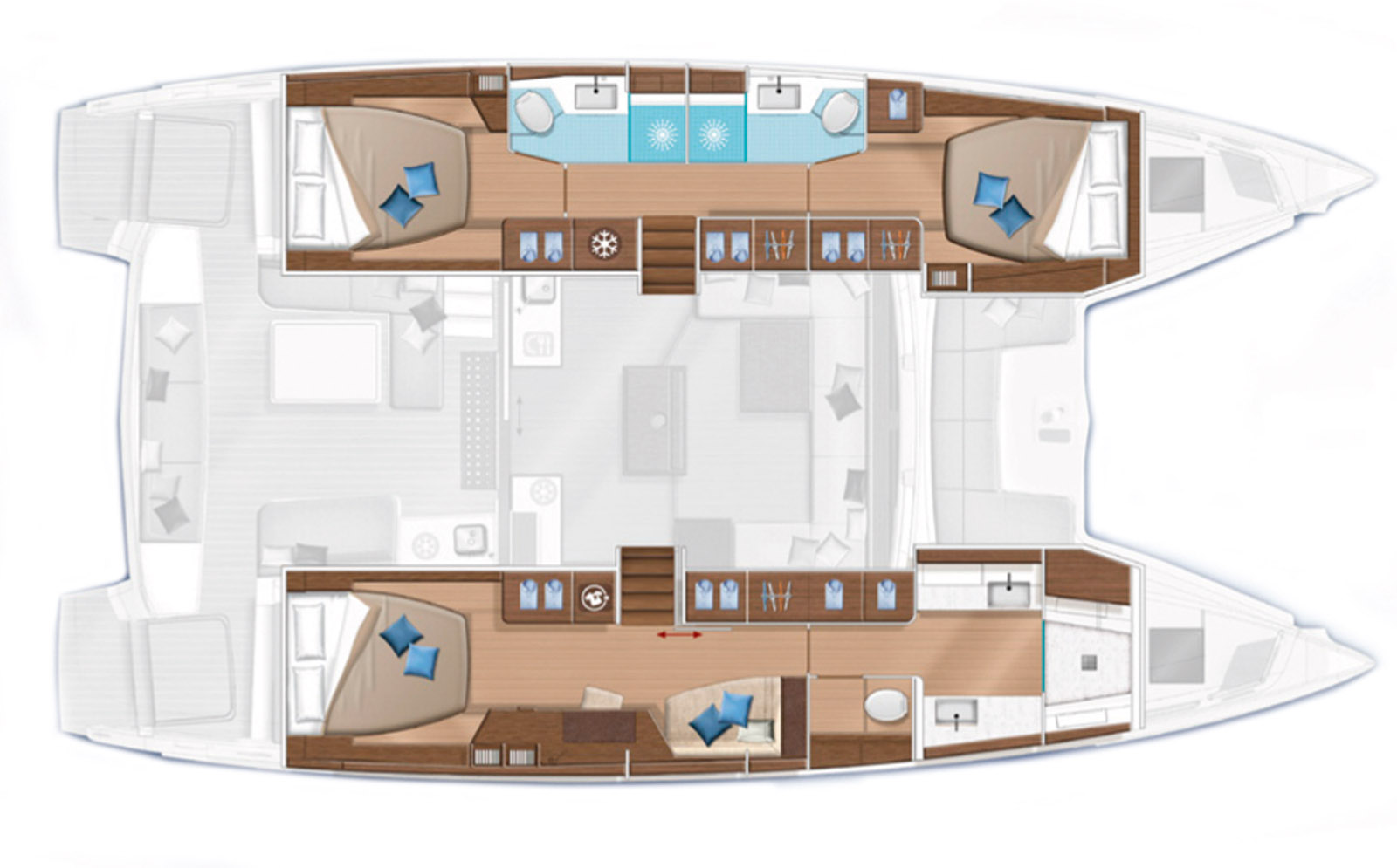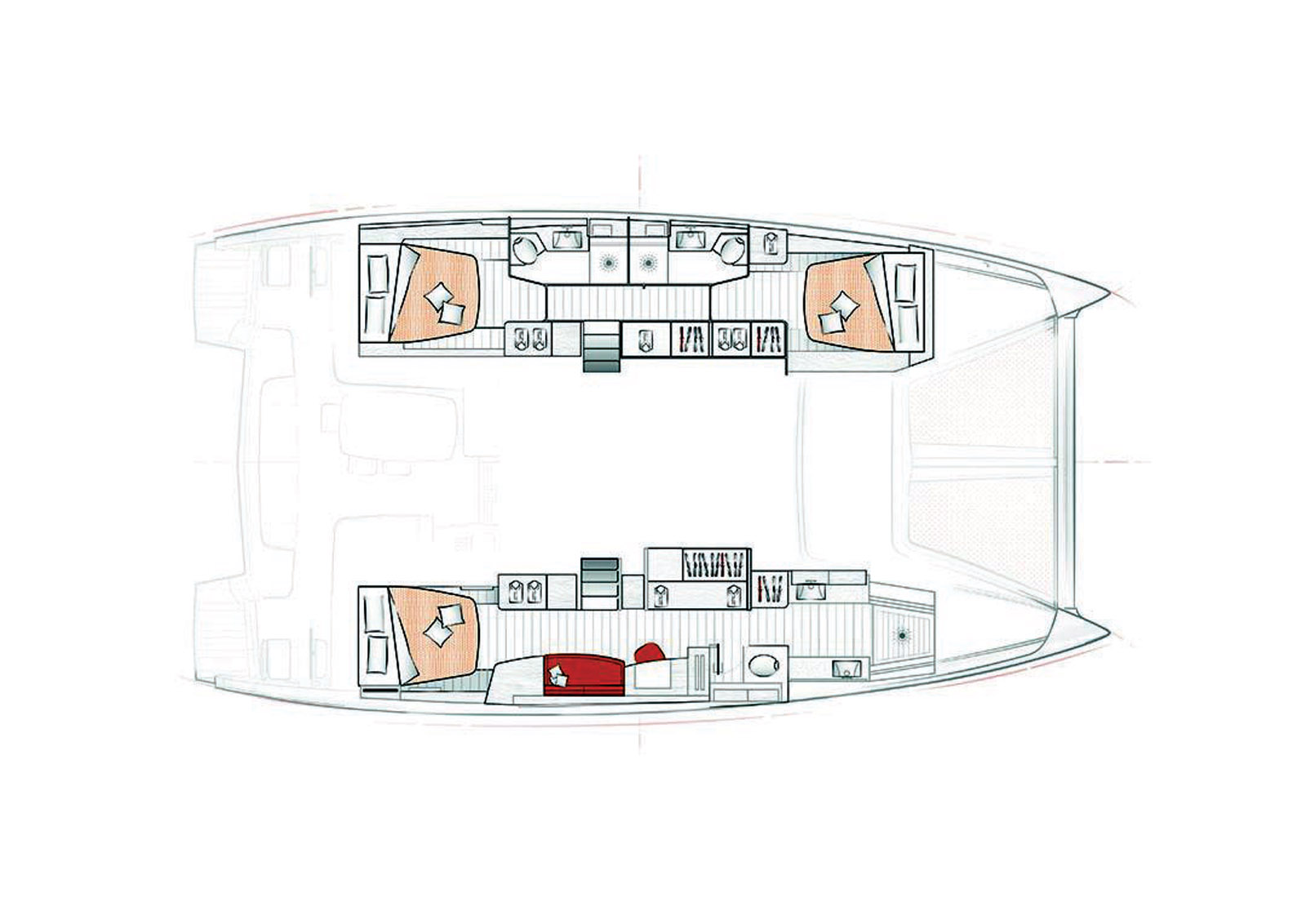 Plan d’aménagement du Lagoon 50 version 3 cabines.