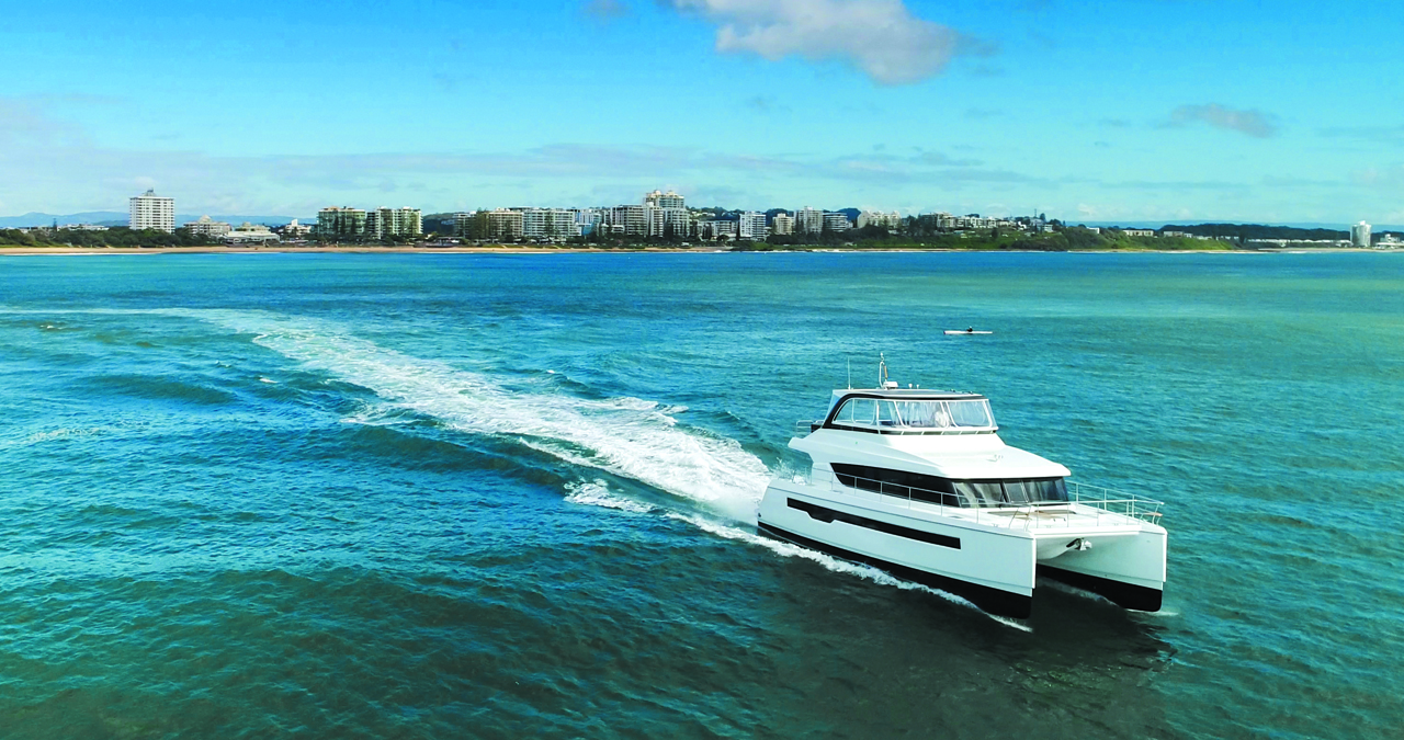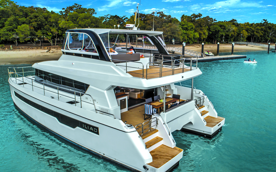 « Il ne s’agit pas là d’un powercat de plus », comme me l’a souligné Mark Elkington, le patron de Multithull Solutions, alors que nous contemplions l’Iliad 50 amarré le long de la Gold Coast. « L’Iliad complète notre gamme Fountaine Pajot (en attendant le prochain Power 67, NDLR), des bateaux à propulsion IPS idéaux pour la croisière côtière, un marché très différent de l’acheteur d’Iliad. Là, nous partons sur 50 pieds, ce qui représente la taille minimale pour charger tout l’équipement qu’un vrai bateau de large nécessite. »