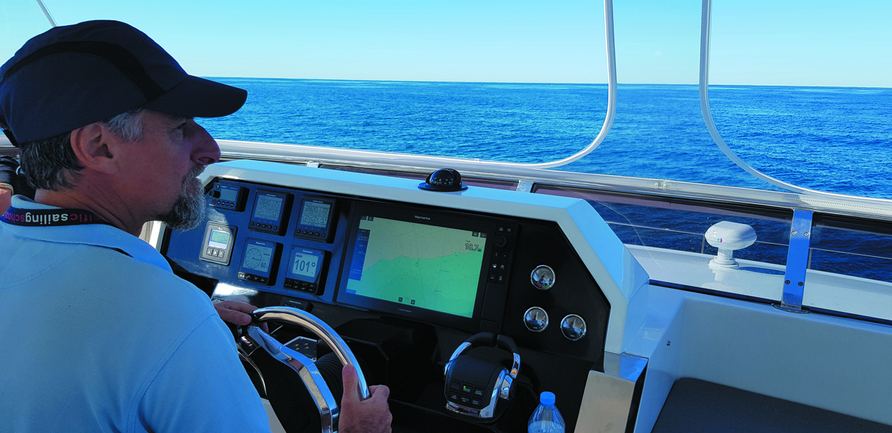 S’extirper de la petite marina a représenté le premier test des capacités de l'Iliad 50. Il aura suffi d’actionner les deux manettes de gaz séparément, en marche avant et en marche arrière, pour faire pivoter le 50 pieds sur place, avant de poursuivre dans le chenal d’accès peu profond. Encore un argument en faveur de ce faible tirant d’eau, pour aller éventuellement jusqu’à la plage en cas de besoin. Derrière la barre, en haut du flybridge, on bénéficie d’une vue bien dégagée sur les hauts-fonds qui s’étendent jusqu’à l’île de Stradbroke Sud. Nous les avons contournés avant de pousser les manettes des gaz, provoquant un rugissement modéré, mais absolument aucune vibration de la part des Volvo de 435 CV. Nous atteignons alors notre vitesse maximum, 21 nœuds, avec les moteurs à 3 450 tr/min. En revenant à une vitesse de croisière plus calme de 18 nœuds, la consommation en carburant s’établit à 105 litres/heure. Les sauts entre les îles du Pacifique sont donc au programme de ce powercat : à moyenne de 10 nœuds environ, l’autonomie de 750 milles est suffisante pour rallier mes mouillages préférés en Nouvelle-Calédonie et au-delà. Les conditions rencontrées lors de cet essai, temps calme et ensoleillé, n’ont pas été très sévères, il a donc fallu aller chercher un peu de mouvement. Une action sur la barre hydraulique a amené le l’Iliad 50 croiser son propre sillage, sans que l’on entende le moindre murmure à bord. En fait, je n’ai pas pipé mot au cours de cet essai, ce qui en dit long sur les qualités de ce catamaran à moteur.