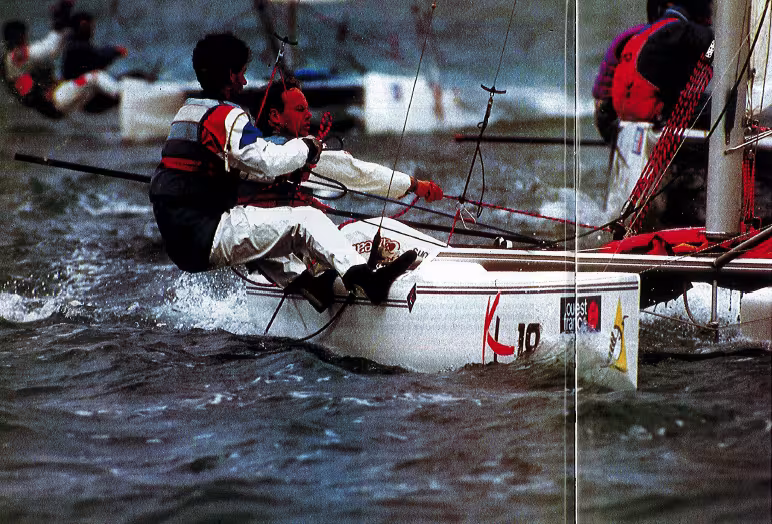 Qui ne connait le 18 pieds du groupe KL Nautique? Ce catamaran "new look" a connu tous les succès en 1992. Servi par une politique sportive irréprochable, l'équation: un bon bateau optimisé pour la jauge PMA + des équipages confirmés = une première place dans presque toutes les régates interséries et un podieum à trois places au challenge voiles et voiliers des catamaran de sport.