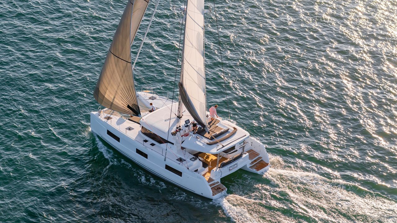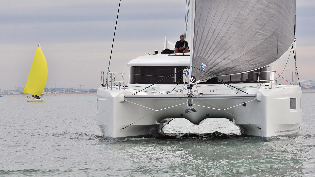 Il est regrettable que nous n’ayons pas pu tester le 46’ dans la mer forte comme nous le faisons d’habitude, mais paradoxalement, les conditions de cette semaine d’octobre ne s’y prêtaient pas ! Ce modèle valide pourtant réellement le nouveau plan de voilure et en démontre la facilité et la pertinence sur un catamaran de 14 m ! Finesse, élévation, beaux profils, polyvalence du triangle avant sont synonymes de performances faciles et de plaisir de pilotage. Le plan de pont, avec la nouvelle motorisation du chariot de GV, est un modèle de simplicité et d’efficacité. L’intérieur revisité emportera probablement les suffrages des équipages hédonistes. La qualité de fabrication est au rendez-vous.