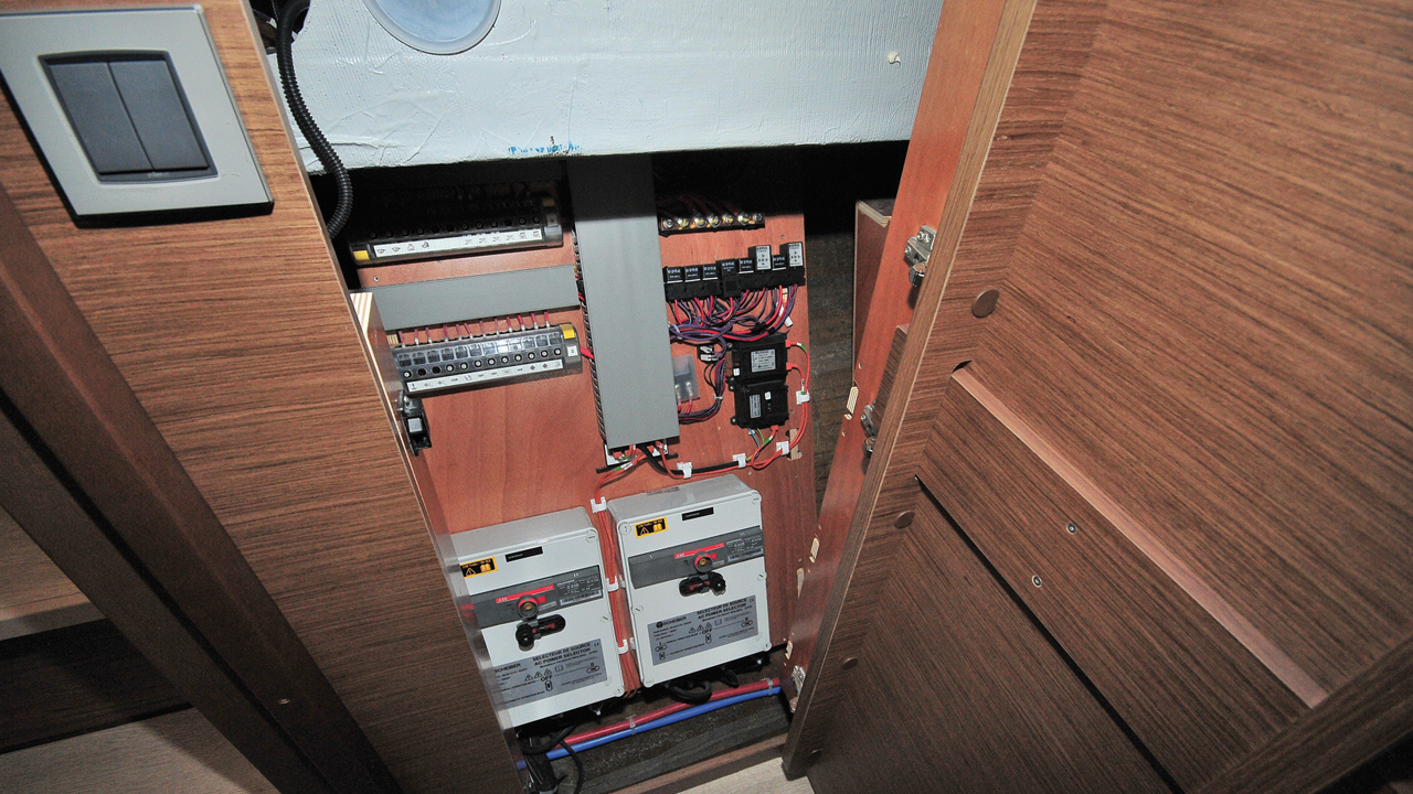- Le tableau électrique secondaire (en bas de la descente tribord) est peu protégé du ruissellement accidentel