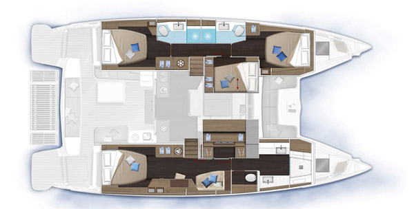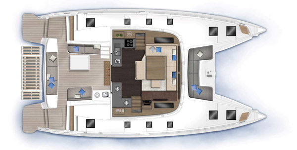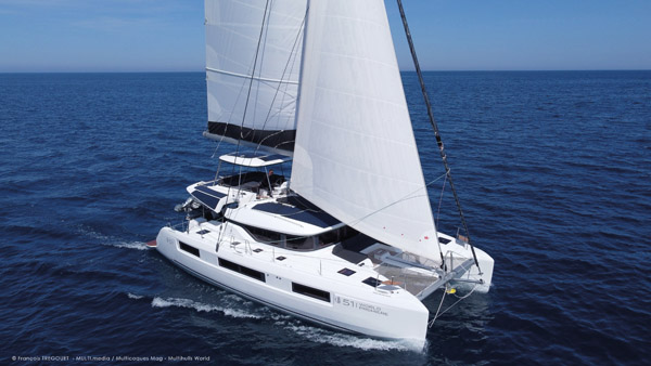 Alors que le cap des 6 000 Lagoon produits a été passé et que les 600 nouveaux catamarans qui sortiront cette année des trois usines dédiées ne satisferont pas un marché extrêmement dynamique, d’aucuns pourraient se reposer sur leurs lauriers. Mais se remettre perpétuellement en question est, chez le leader mondial, une tradition maison. Est-ce que l’écho positif donné à l’arrivée longuement anticipée de l’Aura 51 chez son dauphin Fountaine Pajot l’a poussé à réagir plus tôt ? Si la réponse à la question sera éludée, le renouvellement est difficile à camoufler. La plate-forme est bien celle du Lagoon 50 dont la position du mât a été modifiée – ce qui n’a rien d’anodin d’un point de vue structurel. Pour tout comprendre de ces profondes évolutions, nous avons bénéficié du meilleur guide possible, en la personne du responsable développement des produits voile du groupe Bénéteau.