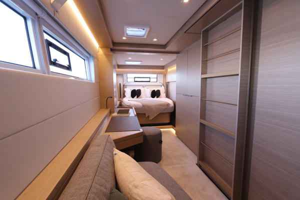 Une véritable suite avec vue sur mer attend les propriétaires dans la coque tribord.
