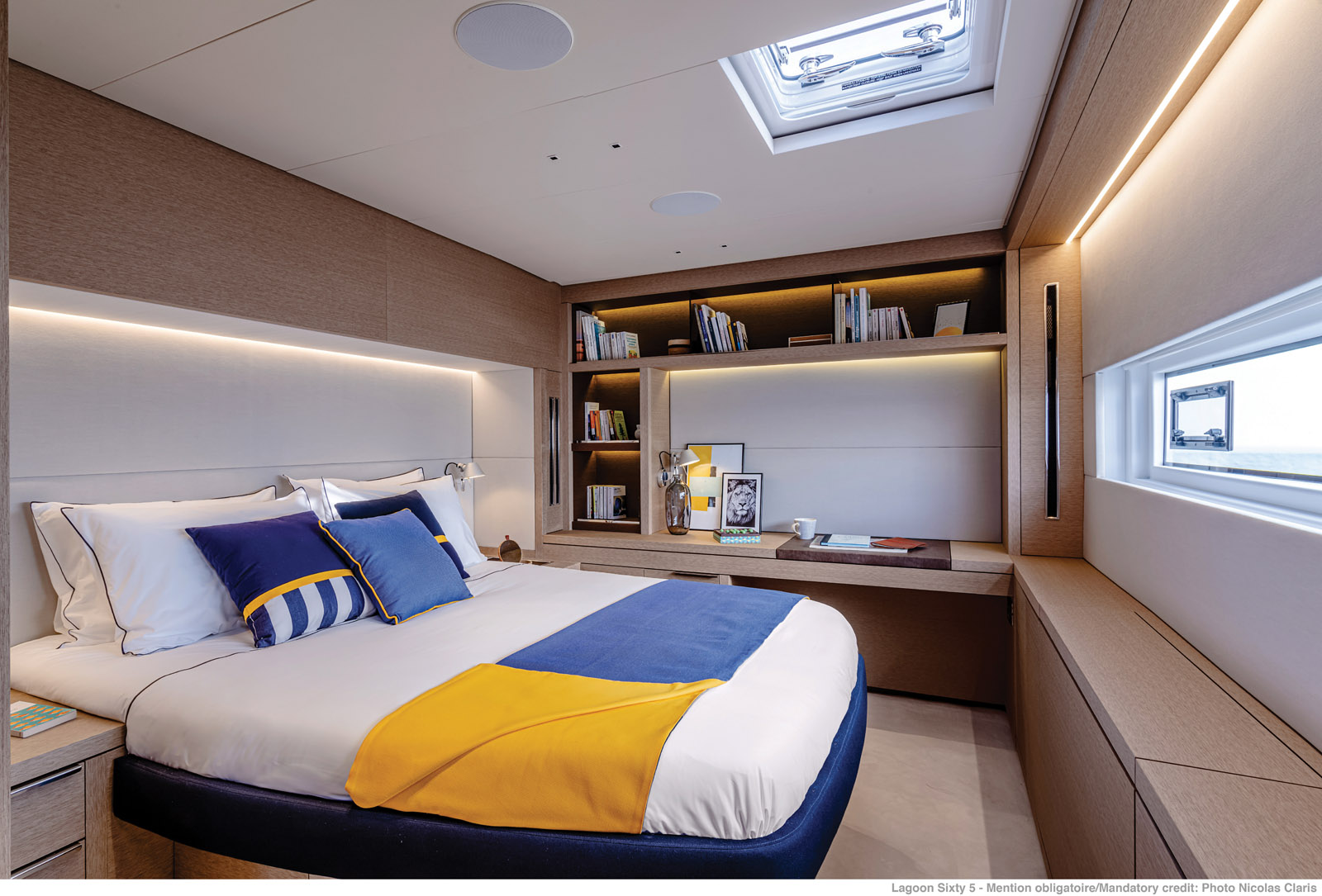 Ce premier SIXTY 5 mis à l’eau est une version Propriétaire ; la suite de ce dernier affiche 21,5 m2 et elle offre un accès direct sur la jupe arrière tribord, en toute intimité.