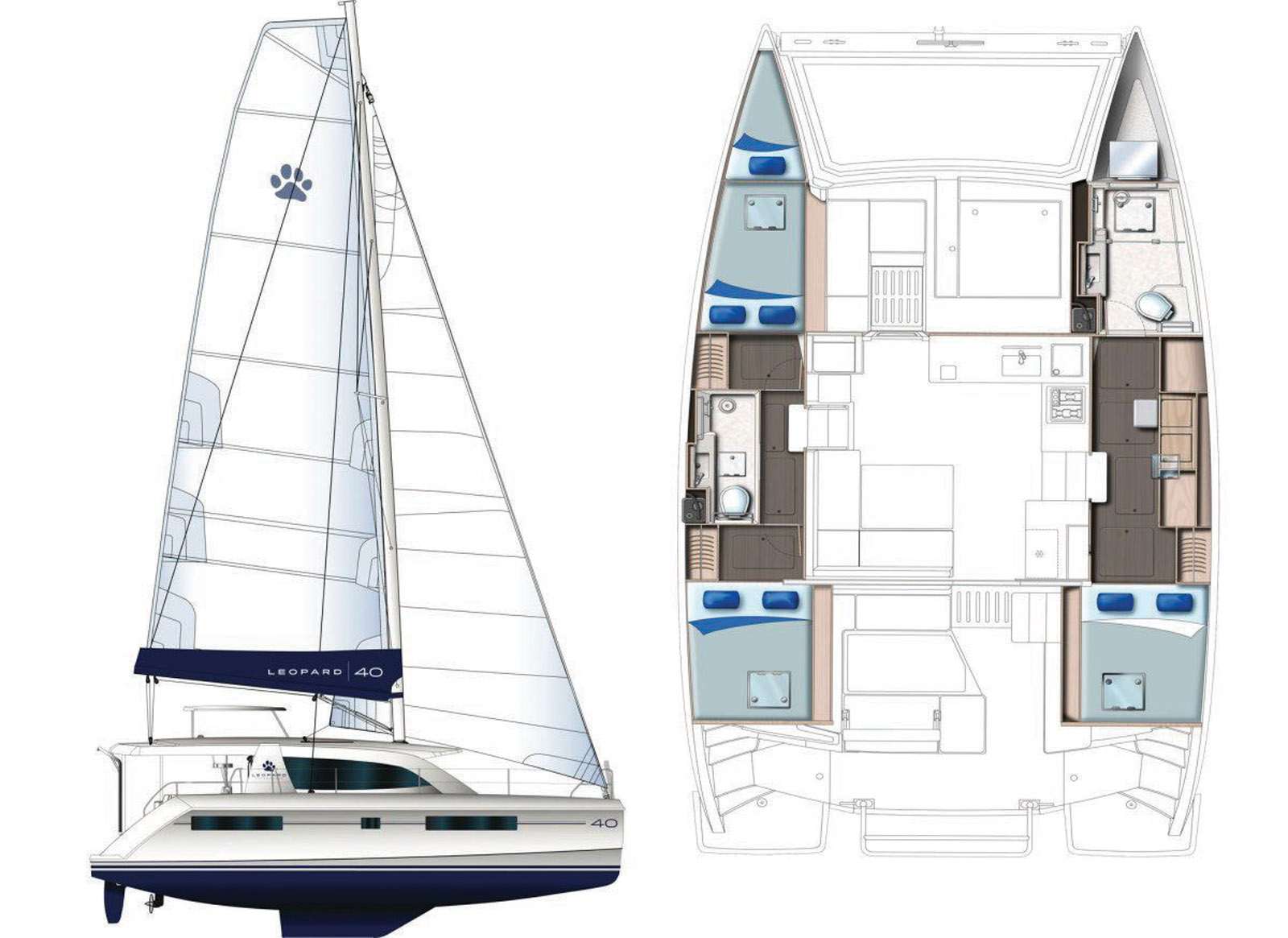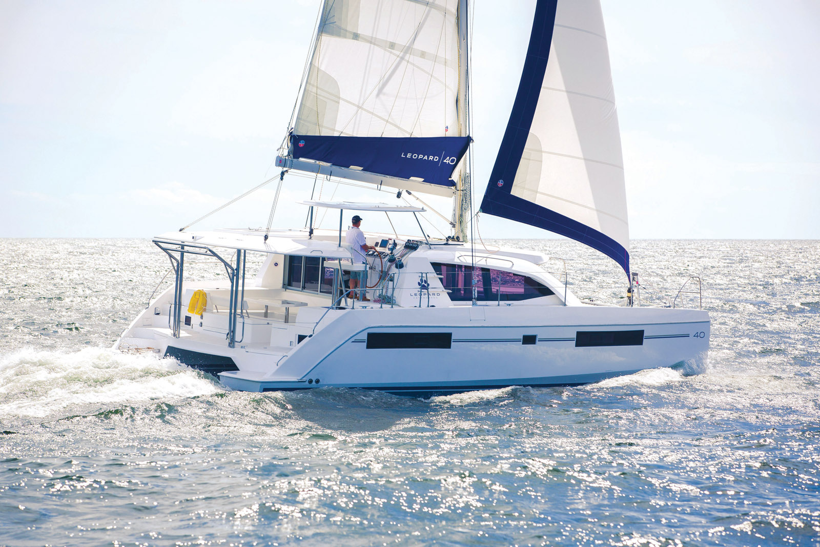 Le remplaçant du Leopard 39 accueille avec plus d’aisance encore, dans moins de 12 mètres de coques, un équipage de 6 à 8 personnes. Son vrai plus ? Une nacelle XXL avec une ouverture sur le cockpit, une autre sur la plage avant.
