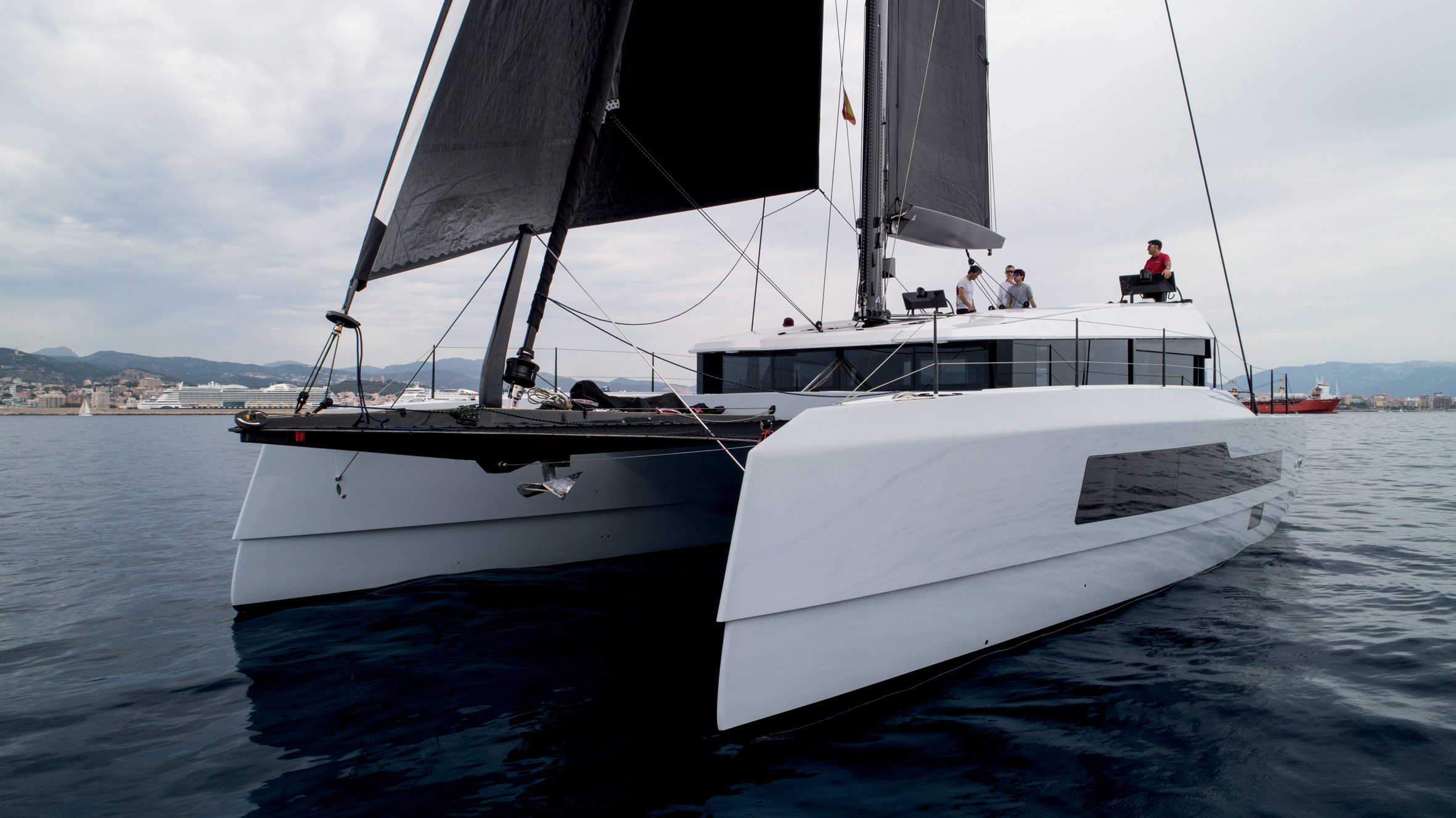 Lorsqu’un constructeur australien leader en matière de prototypes de compétition (mais encore peu connu du public plaisancier) décide de prendre position avec un de ses architectes référence sur le marché des catamarans de croisière, cela mérite attention. Avec une entrée de gamme à 50’ et des modèles de 55’, 60’ et 90’ attendus, l’intention ouvertement affichée est de mettre un pied dans la porte du segment Multiyacht… en multipliant les innovations ! Nous étions impatients de découvrir ces catamarans iconoclastes et de vous livrer nos premières sensations à bord du Mc Conaghy 50’.