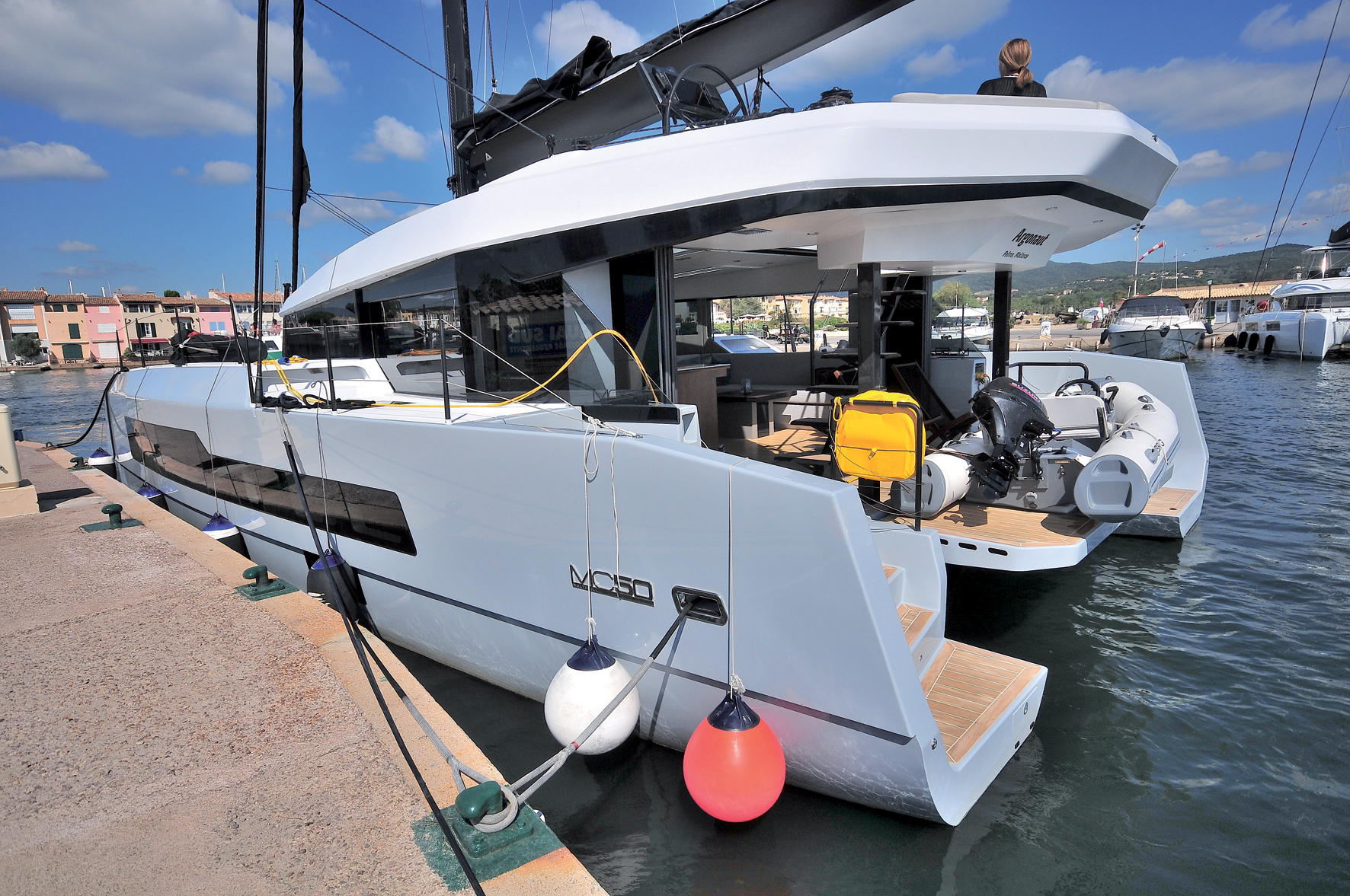 Les visiteurs du salon des multicoques de la Grande Motte ont découvert en avant-première la silhouette révolutionnaire du MC50’ et ceux de Cannes celle du 60’ qui est presque un sistership (3 m plus long). L’implantation d’une base commerciale de la marque à Palma de Majorque facilite cette exhibition dans les boat show sudistes accueillant la clientèle potentielle de ce genre de multicoques d’exception. Nous avons profité d’une belle journée d’été en baie de Saint-Tropez pour découvrir cette machine carbone luxueuse et originale.