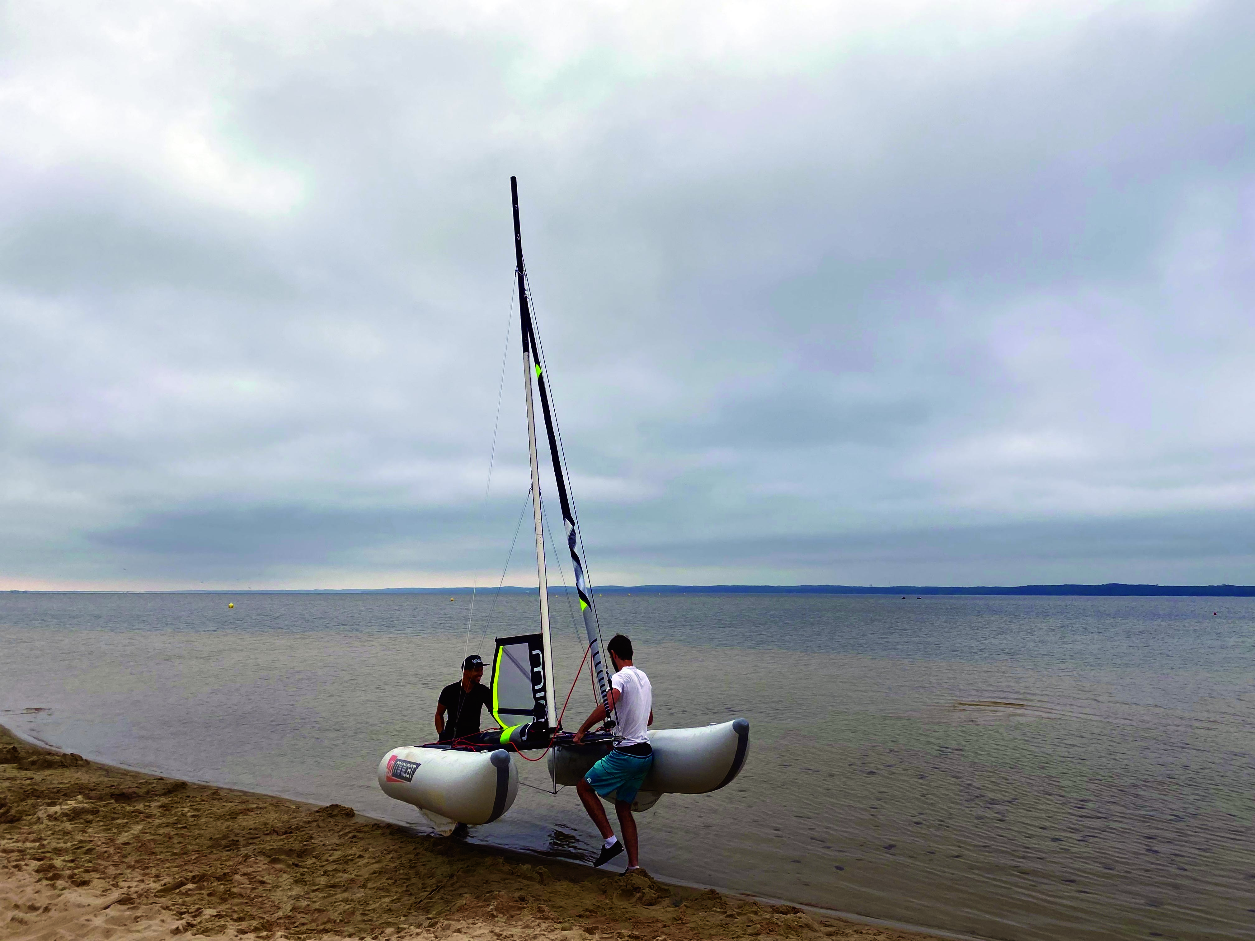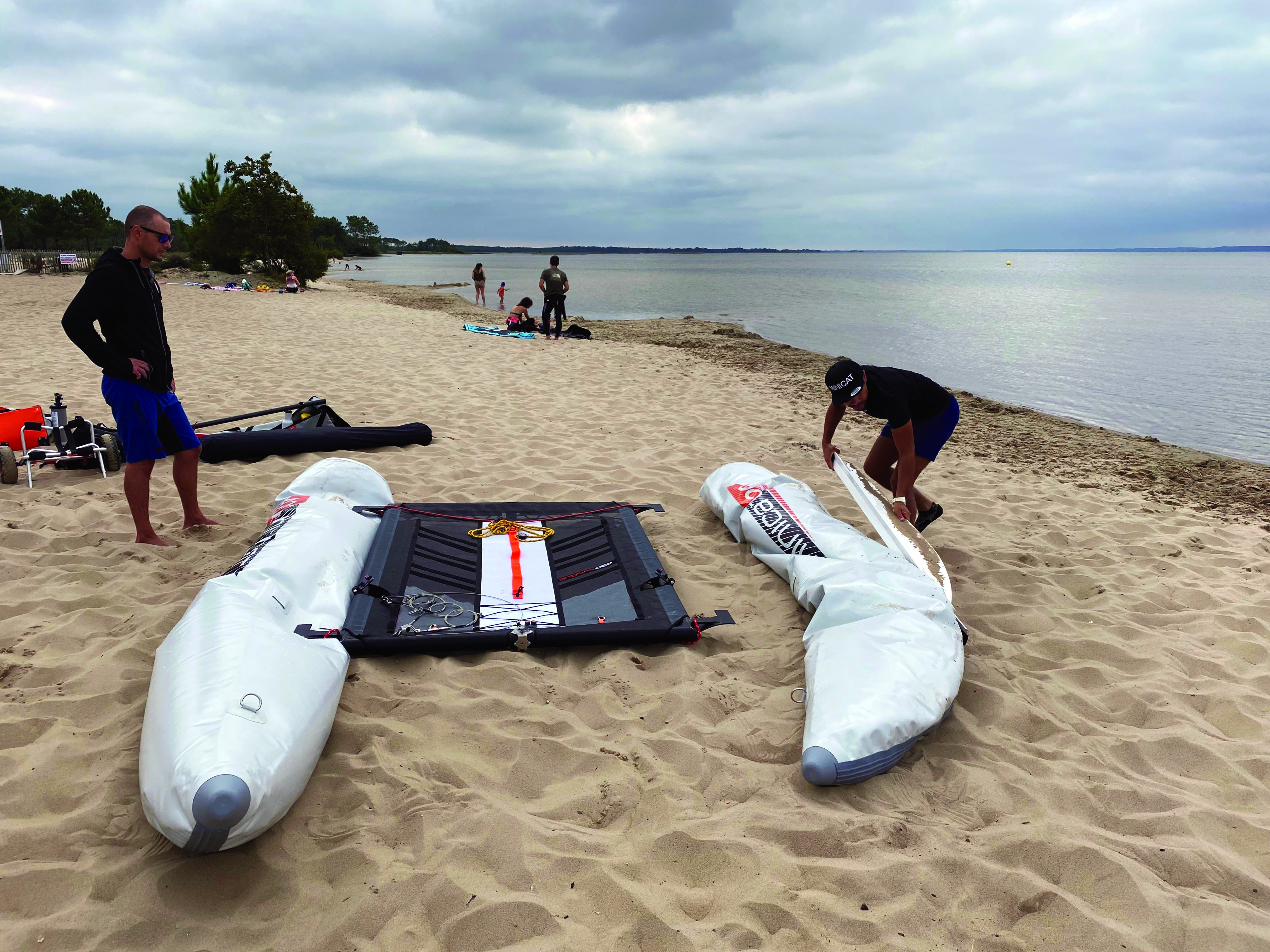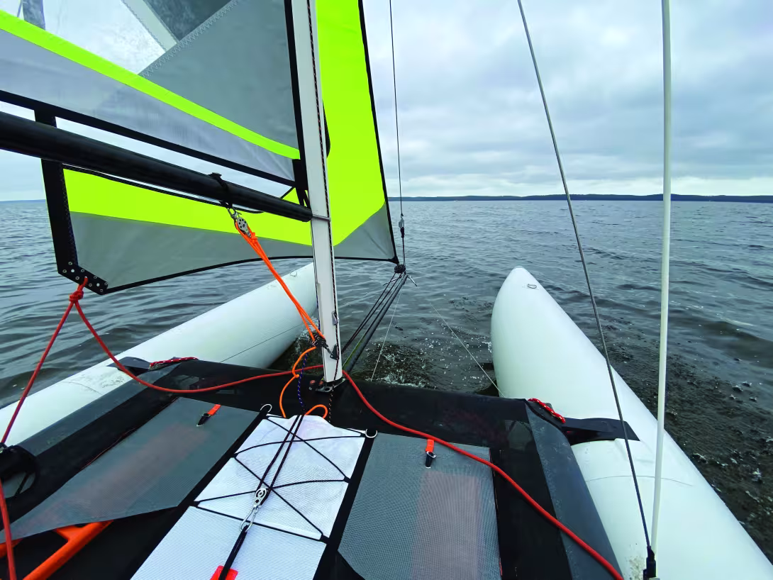 Ce petit catamaran gonflable préfère la brise aux petits airs.