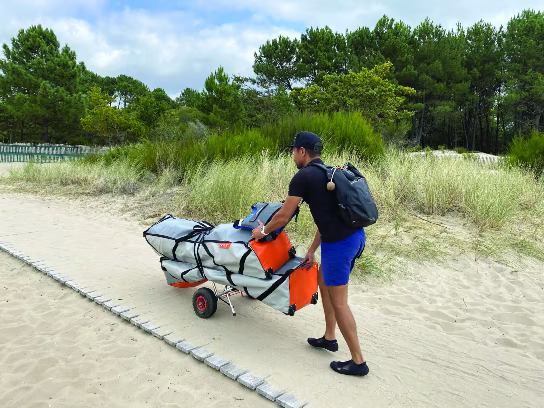 51 kg tout mouillé : le 420 se porte facilement à deux. On peut le tirer seul sur le sable