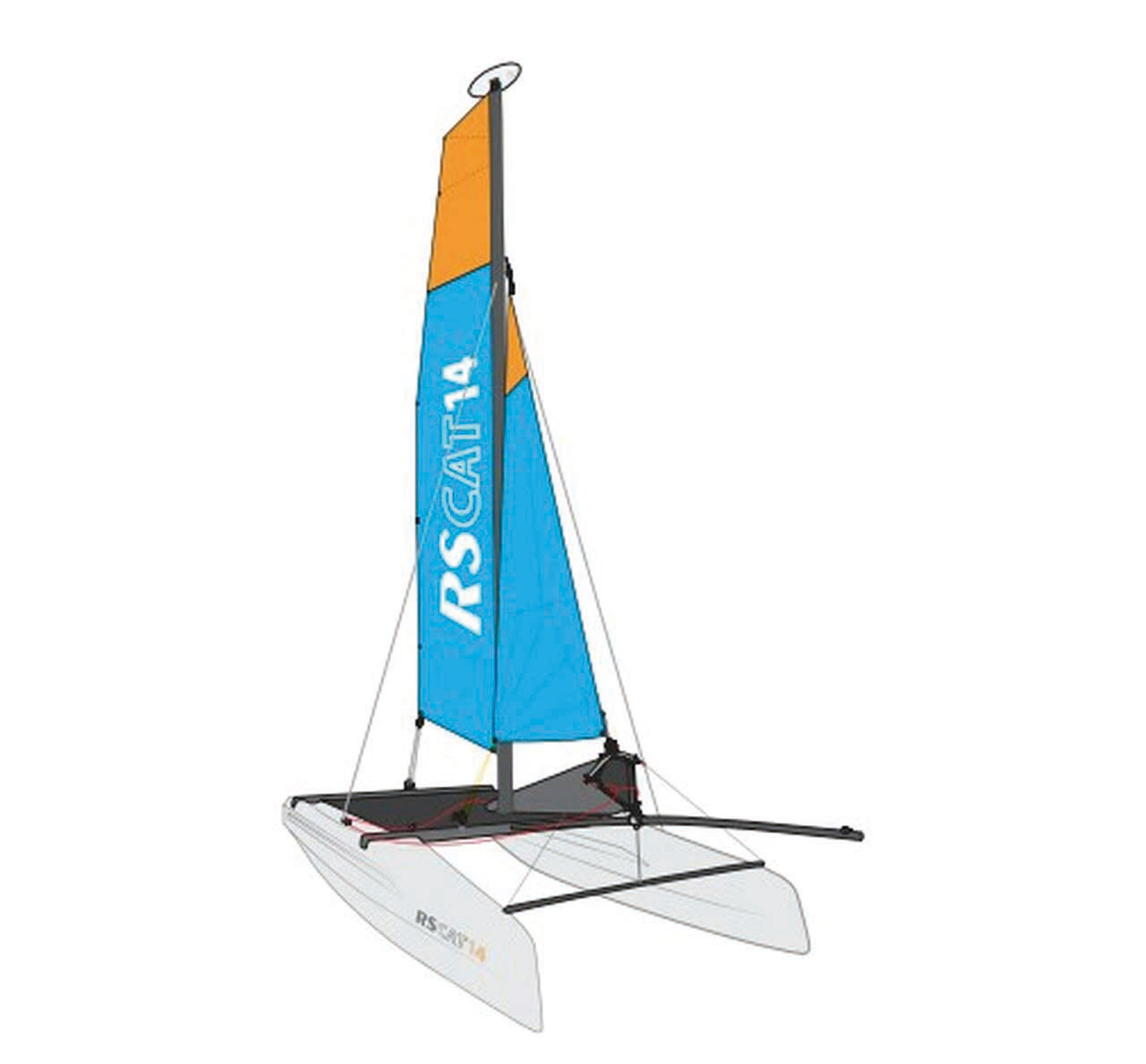 Grâce à ses coques volumineuses, le RS Cat 14 peut accueillir deux équipiers, voire trois ou quatre, puisque le poids maximum est de 360 kg.