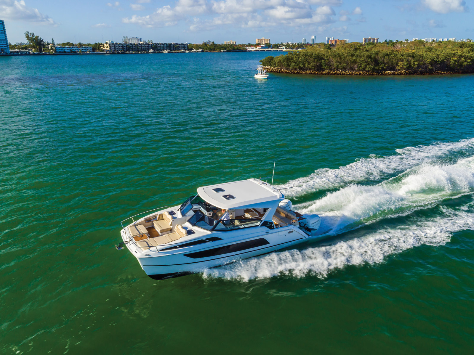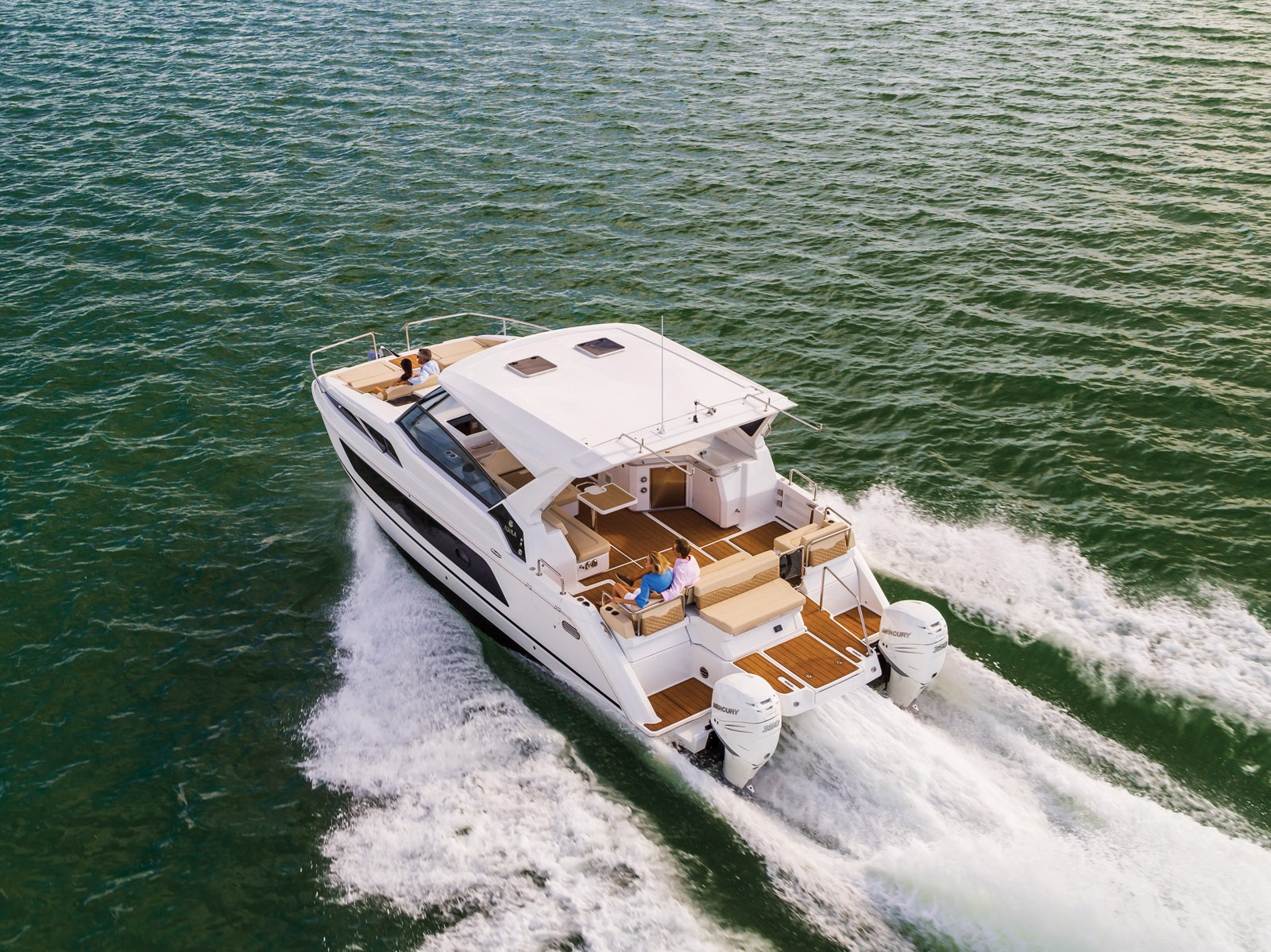 L’Aquila 36 a été conçu – au départ – pour les plaisanciers américains. Son cahier des charges est pragmatique : bonnes aptitudes marines, beaucoup d’espace et une modularité fonctionnelle. Un cocktail gagnant qui ouvre à ce powercat des utilisations très variées, comme la balade à la journée, la petite croisière, les réceptions à bord, la pêche et la plongée.