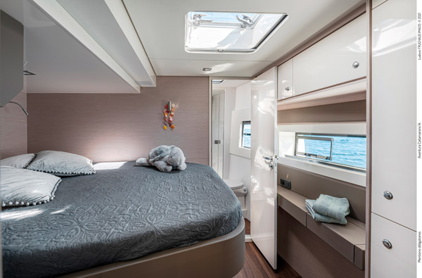 La ou les cabines arrière possèdent leur accès indépendant depuis le cockpit ; elles sont idéales pour les jeunes, les amis ou le capitaine.