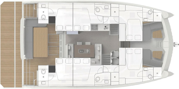 Cet Aventura 14 frappe incontestablement un grand coup. Nos lecteurs ne s’y sont pas trompés en l’élisant Multihull Of The Year dans sa catégorie. Le volume habitable impressionnant est exploité de manière optimale pour surclasser les prestations, lesquelles deviennent celles d’une unité bien plus grande. Polyvalent, l’Aventura 14 peut convenir à différents modes de navigation. Pour une famille nombreuse, il sera une belle plate-forme nautique pour de confortables vacances. En mode charter de luxe, sa cabine Propriétaire, l’installation bien pensée de l’équipage et un équipement de grand luxe satisferont les plus exigeants. Enfin, au long cours, son autonomie et sa robustesse en font un candidat au grand voyage. Il rassemble des compétences uniques dans sa catégorie – une douzaine d’unités est déjà en commande.