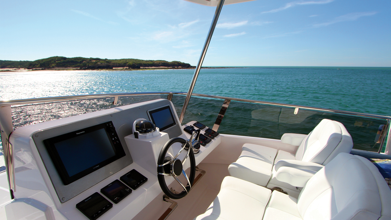 4 : Confortablement installé sur le flybridge, on a une vue imprenable à 360° – et de confortables assises pour en profiter.