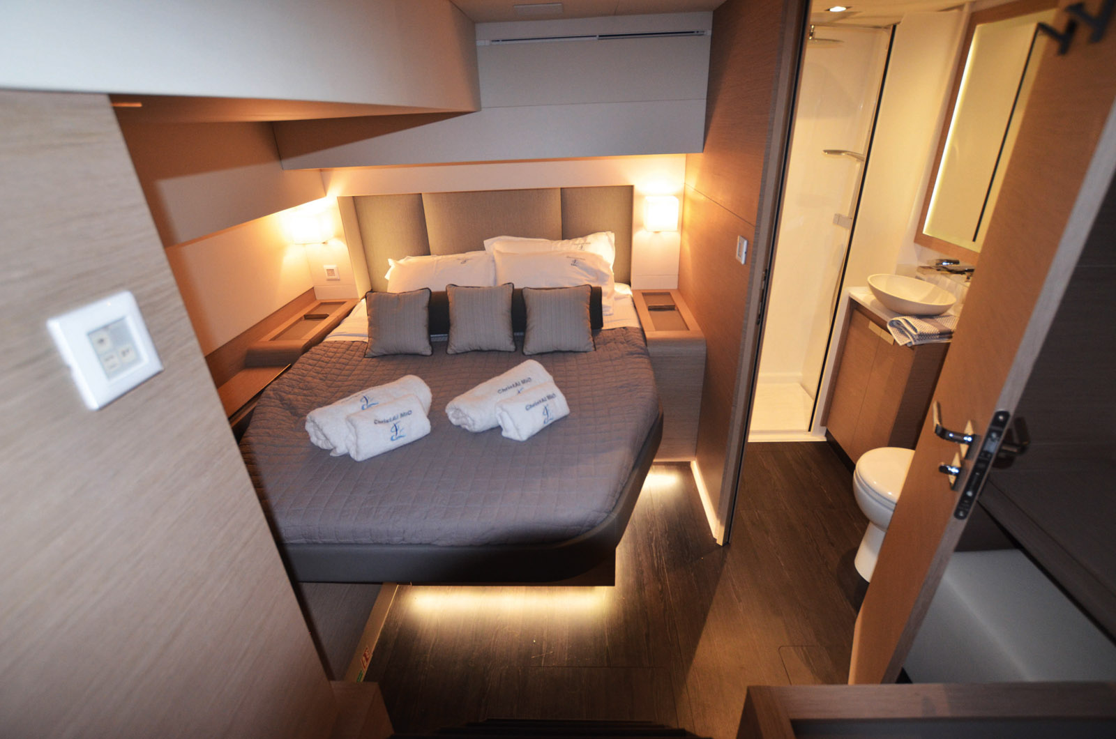 Les cabines arrière ont un accès indépendant directement depuis le pont. Leur literie haut de gamme procure un excellent confort pour la nuit.