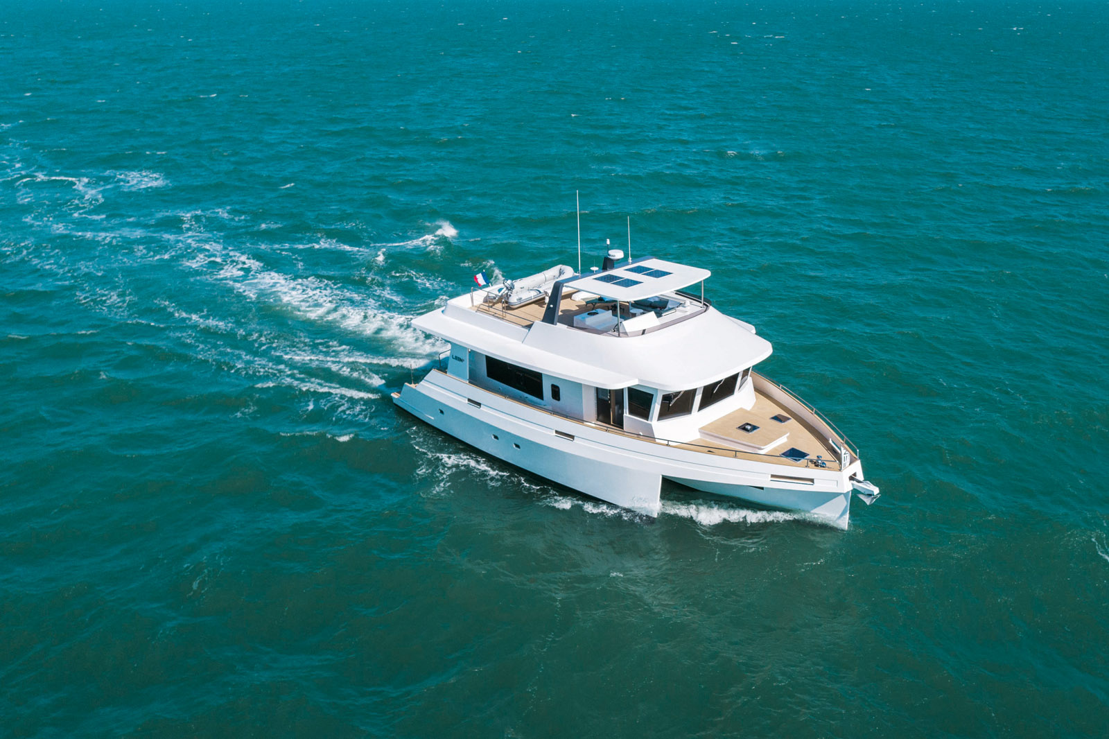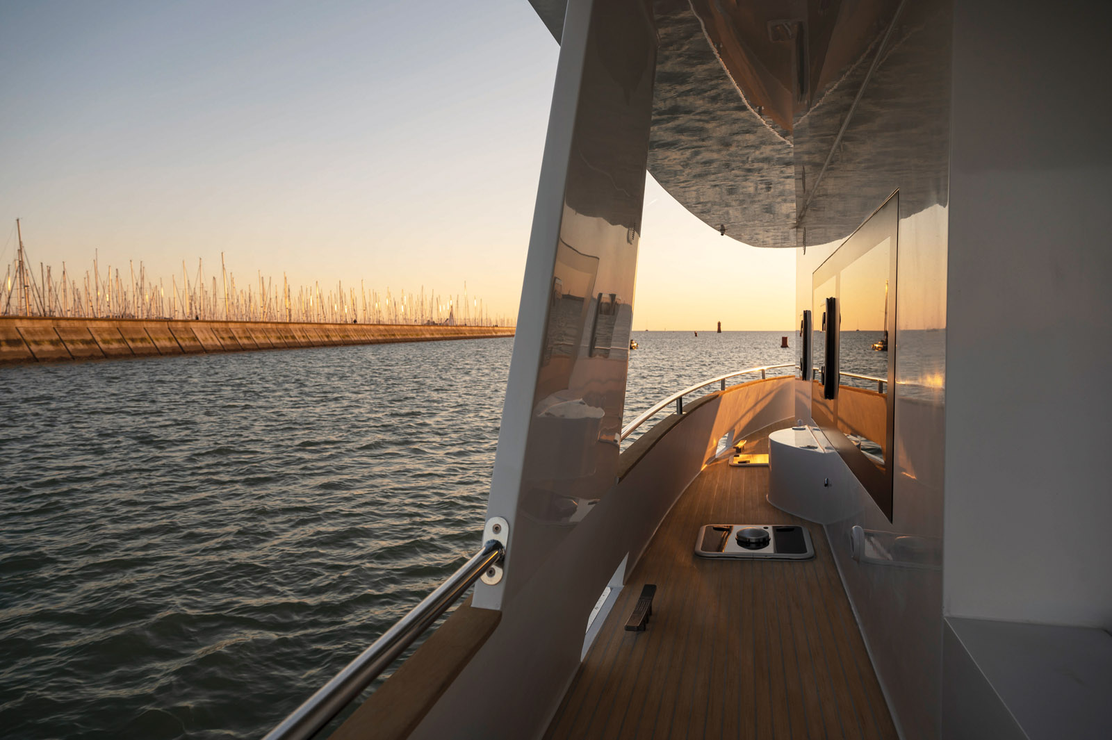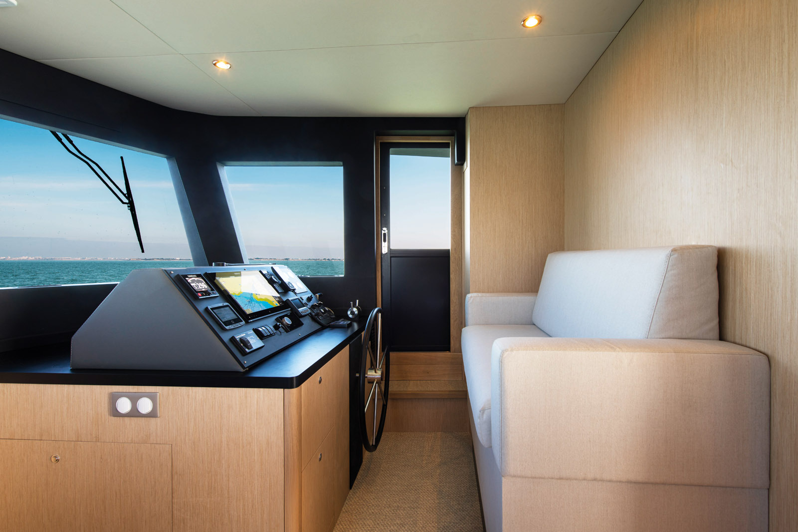 Le pare-brise inversé garantit une bonne visibilité même lors des pires conditions météo. La porte de coupée permet un accès direct sur le pont.