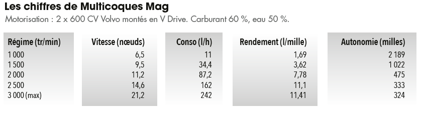 Consommation équivalente à celle d’une vedette monocoque bien plus petite