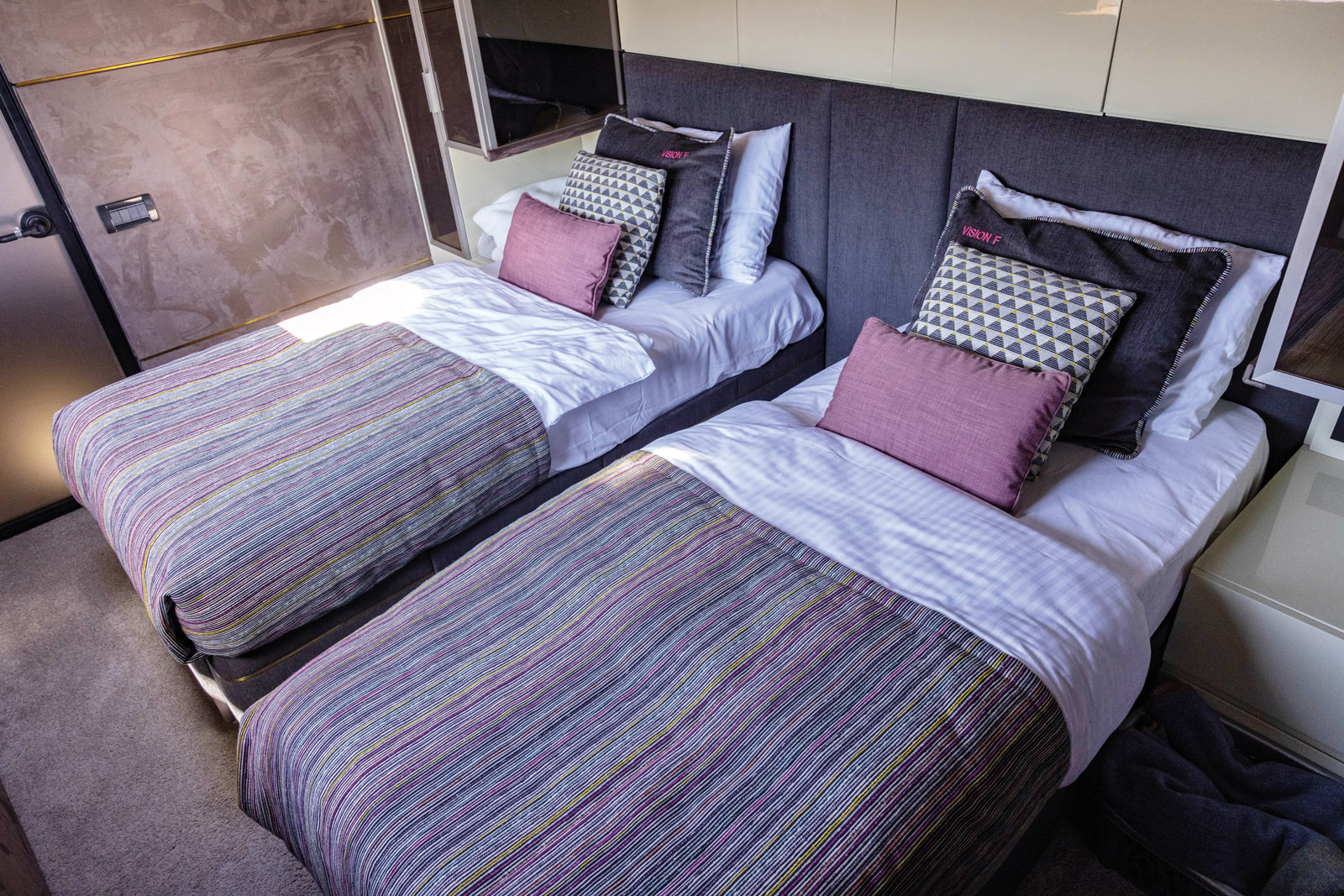 Les cabines pour les enfants, les amis ou la famille sont décorées de manière individuelle et ne répondent pas à un unique code couleur. Chacun à bord peut disposer d’une ambiance personnalisée.