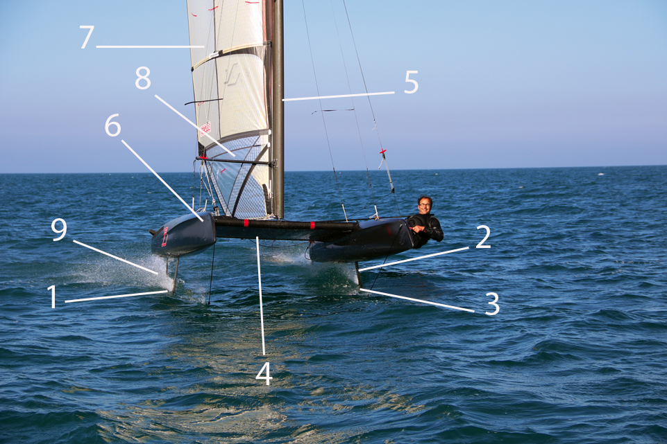 3 - Palpeurs : placés le plus à l’avant possible, ils commandent de manière autonome les volets des foils de dérive.