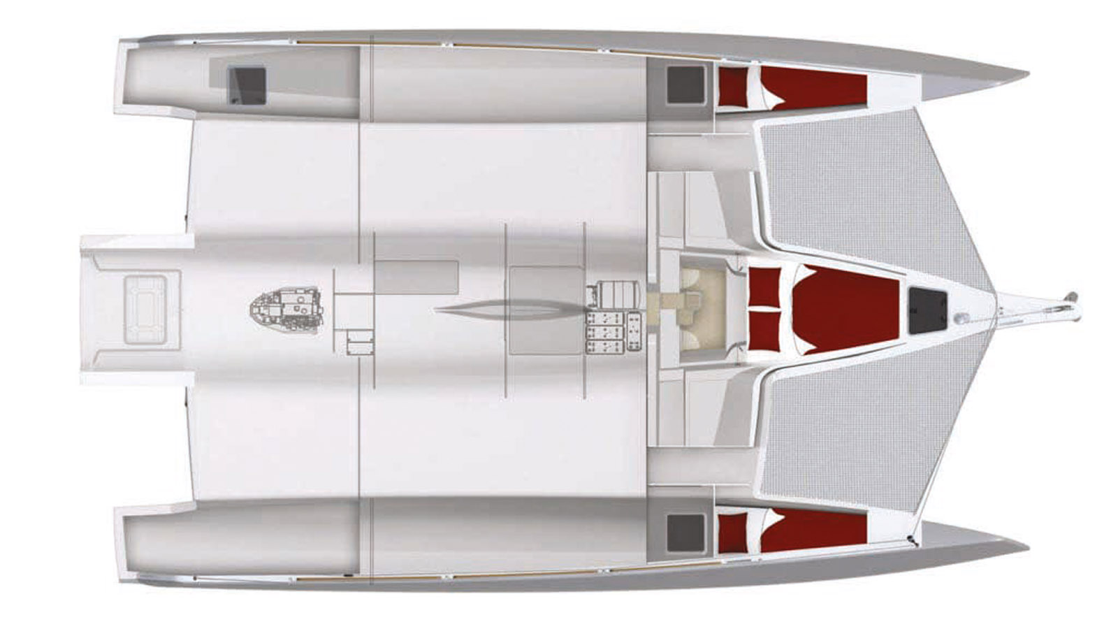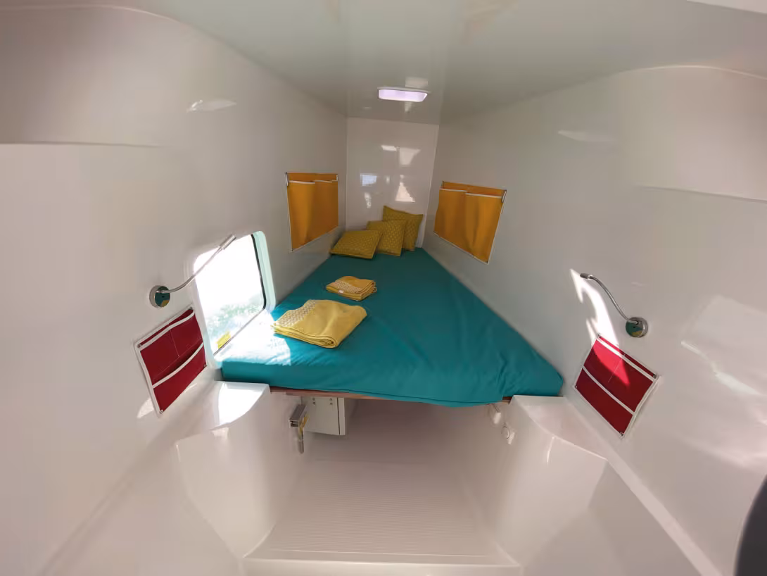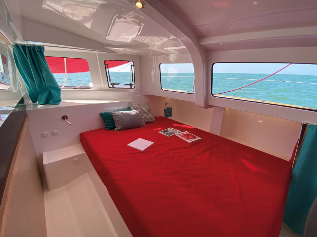- Moins d’intimité dans les cabines – en comparaison avec un catamaran « classique »