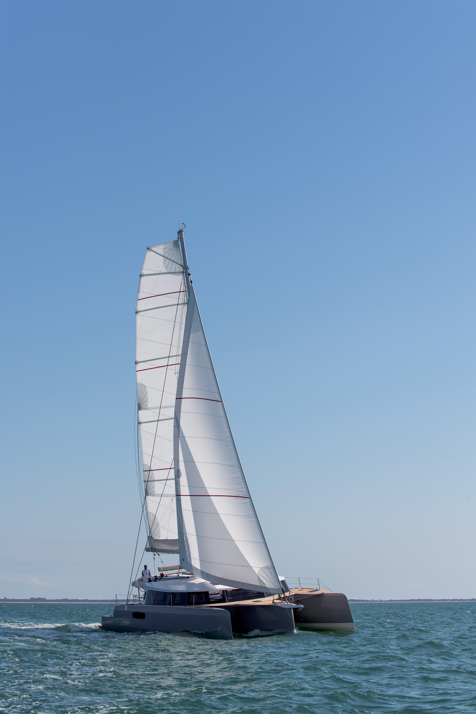 Ce nouveau champion de l’habitabilité est aussi un multicoque agréable et dynamique qui marche bien par petit temps et médium (7-12 nœuds). Certes, il ne planera pas dans le médium fort (15-18 nœuds) comme un tri léger, mais il s’avérera agile et rapide dans la brise soutenue (25 nœuds) au portant avec des possibilités de performances surprenantes ajoutées à la sécurité et à l’aisance de la géométrie trimaran dans la mer croisée. Les convoyeurs qui ont amené le no 1 de la série au salon de La Grande Motte ont validé une journée de portant à 290 milles sous 2 ris trinquette avec une top speed de 20,4 nœuds sans chercher à cornaquer le bateau. Une version 2 cabines, bien menée avec des réservoirs à 50 % de leur capacité, constituera une limousine de grand voyage redoutable.