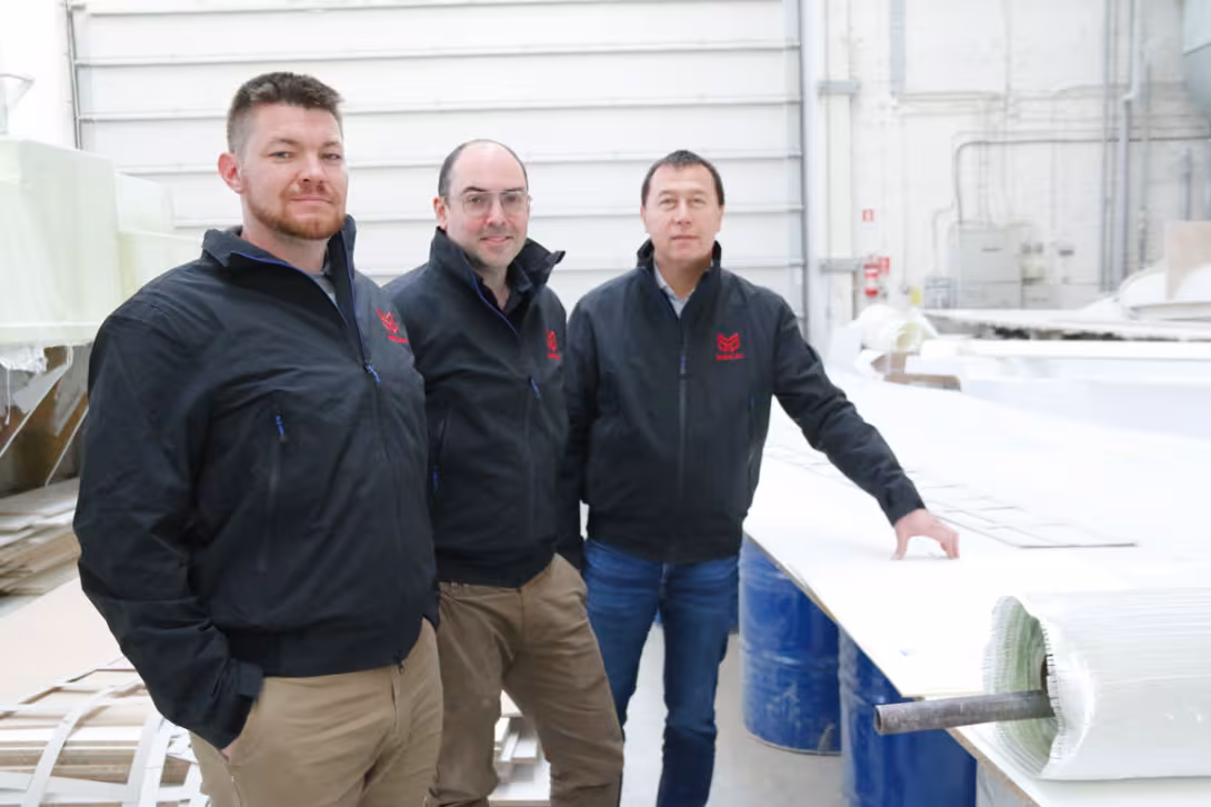 In terms of design, this sporty powercat is clearly inspired by Italian cabriolets. Performance will not be overlooked, as Jay Nolan, co-founder of the brand (centered in the photo of the three men), promises us a top speed close to 40 knots thanks to the design of the hull - which is planing and semi-asymmetrical. In cruising mode, the Makai 37 aims to combine driving comfort and reduced fuel consumption. The interior accommodation features two beautiful, independent cabins, each with its own bathroom. Hull #1 is scheduled for launch right at the start of summer: Multihulls World has already booked in for the first test!
