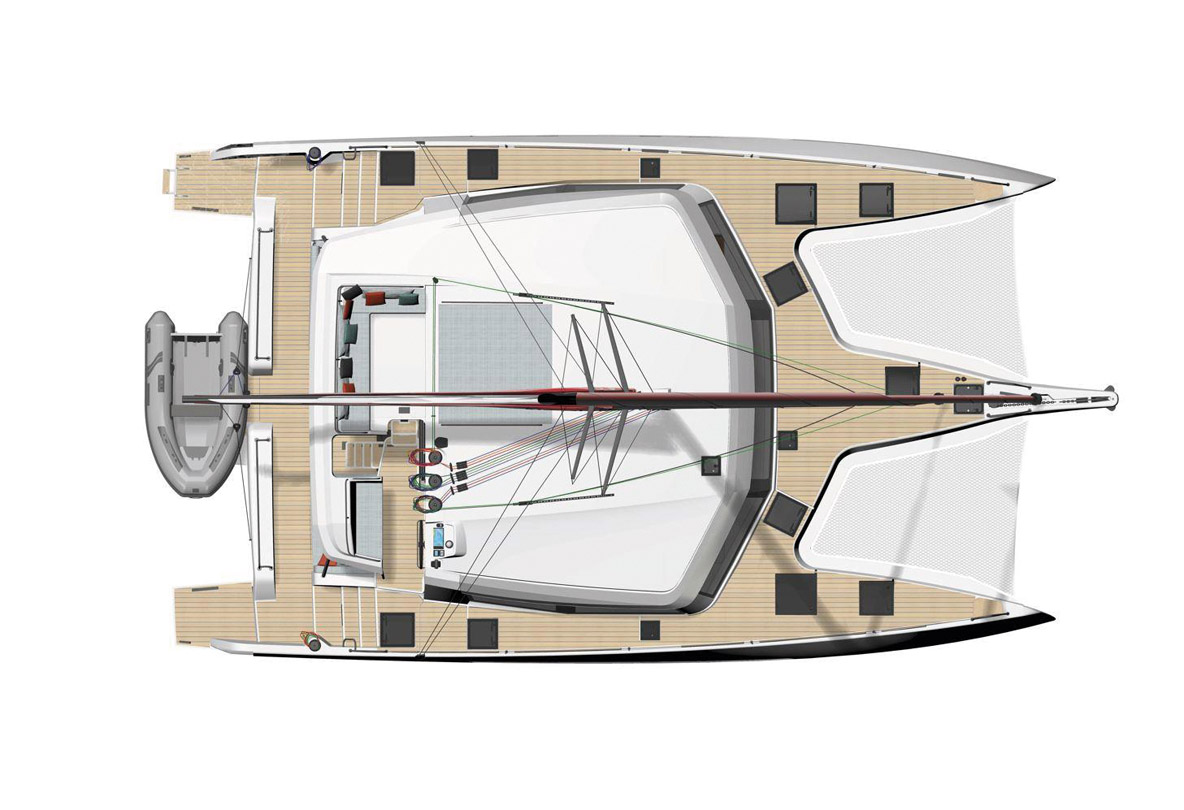 Builder: Royal Cape Catamarans - Length: 57’ (17.38 m)Beam: 28’3” (8.6 m) - Light displacement: 51,800 lbs (23.5 t)Draft: 4’7” (1.4 m) - Mainsail: 1,162 sq ft (108 m²)Genoa: 818 sq ft (76 m²) - Engines: 2 x 80 HPFuel: 2 x 158 US gal (2 x 600 l) - Water: 264 US gal (1,000 l) Price ready to sail: € 1,800,000 ex-taxwww.royalcapecatamarans.com