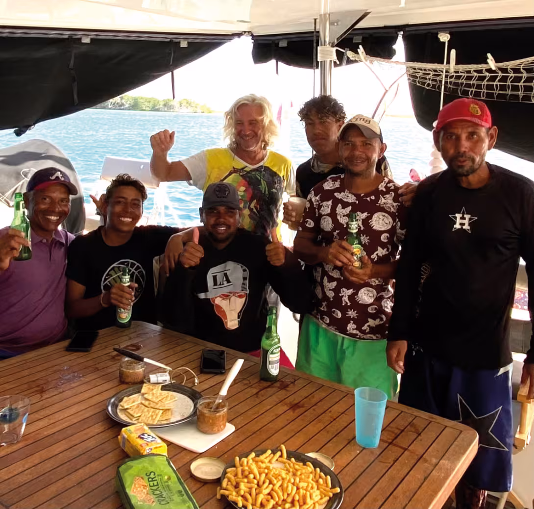After Los Roques, we didn’t think we would ever find anywhere better; we didn’t expect that the deserted Isla de Aves (Island of Birds in English) would excite us after what we had just experienced. Of course, we were apprehensive about going to this small archipelago. Its reputation often leads sailors to avoid it. This reputation dates back to May 1678 when a large French squadron was shipwrecked by a stubborn and obstinate admiral. We decided to go anyway, even though we were alone. A few miles before our arrival, we were very surprised by the sheer numbers of birds around Jeredam. As we approached the anchorage, two lanchas (fishing boats) came to meet us and ask for water. The Aves are uninhabited islands where only a dozen fishermen come to spend a few days. But the islands have neither water nor electricity, so it is difficult to stay 3 weeks on an island with a limited supply of water. How pleased they were when we told them that we had a big water maker and that we could provide them with water during our whole stopover! The water was exchanged for fish, octopus and lobsters. We became friends with a group of 6 fishermen with whom we stayed throughout our stay. We went fishing with them on their lancha, we ate together on Jeredam, and we went for little walks around the islands. We had never seen so many birds in our lives. They are everywhere and there are lots of different species. They are quiet and reproduce on the islands where they are all alone and do not get disturbed. When walking, you have to be careful because there are birds, chicks and eggs everywhere. They are not afraid of humans, probably because they don’t see many people. The pink flamingos are also numerous, but they remain a little more fearful. The waters are crystal clear, and the shades of blue are incredible. But for us, our best memories remain our meeting with the fishermen, and we will never forget them. Since setting out nearly 3 years ago, our favorite destination has been Les Aves!