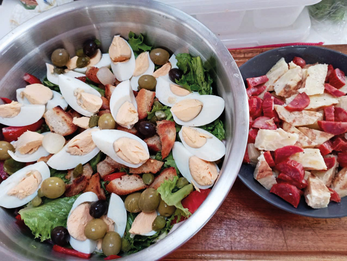 Off to a good start: Piment Rouge takes the lead! On our starboard side and under yellow Parasailor, the inevitable Bigbird who we’ll have to beat by a good day. Ahead of us, apart from the dolphins, nothing but beautiful adventure awaits! Faced with this immense challenge, we launch big maneuvers in the galley with a new take on salad, sailing under asymmetrical spinnaker on port tack...